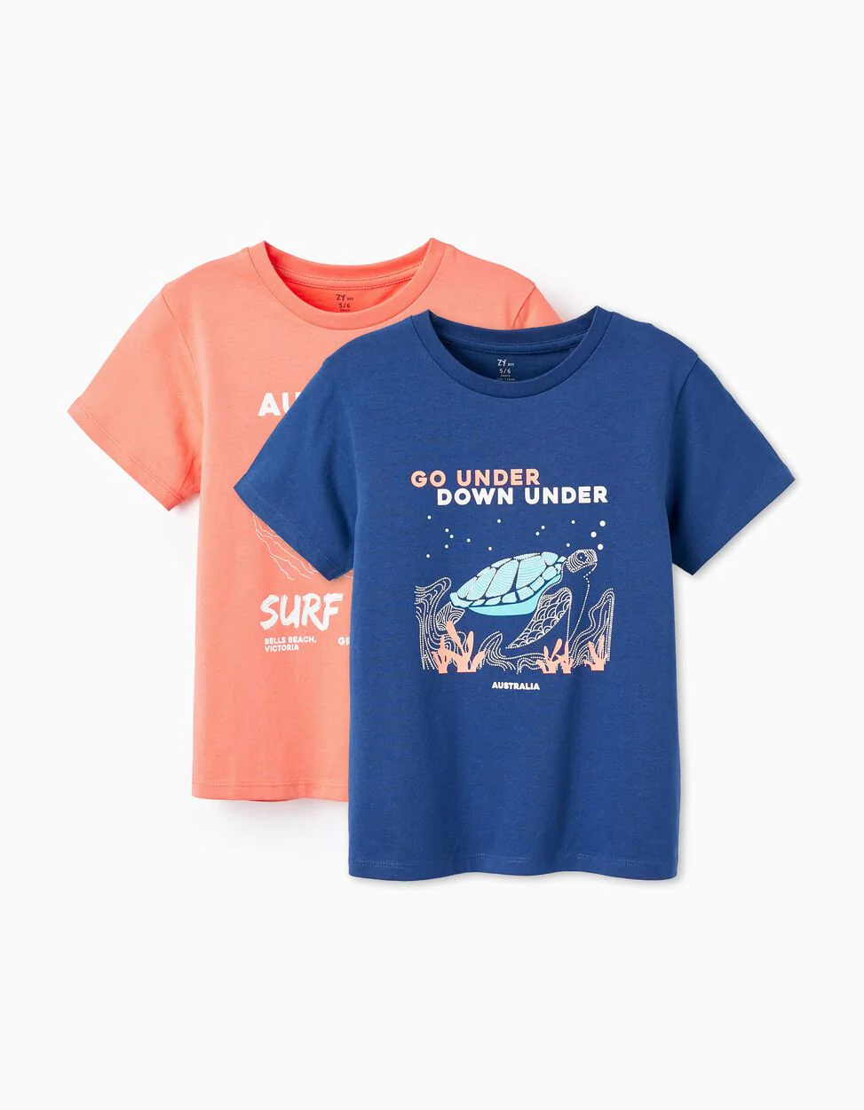 Confezione da due magliette per ragazzi, 100% cotone. Include una maglietta blu scuro e una color corallo, entrambe con stampa frontale. Collo a costine per una facile vestizione ed etichetta interna stampata per non irritare la pelle. Un set di t-shirt pratiche e comode per soddisfare le esigenze della vita di tutti i giorni.