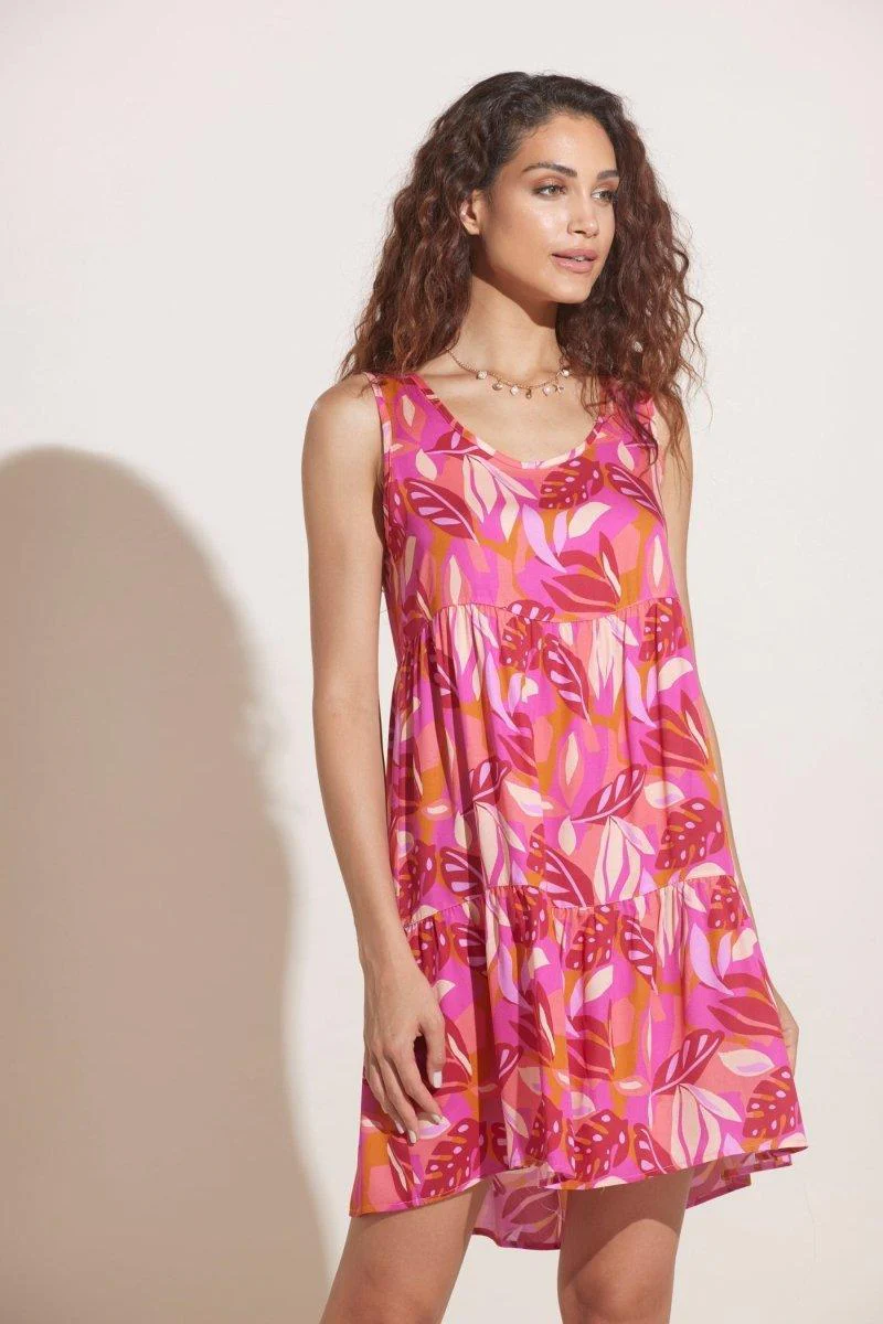 Abitino mare donna spalla larga in viscosa Noidinotte, scollo a giro e con maxi rouches stampa floreale.
