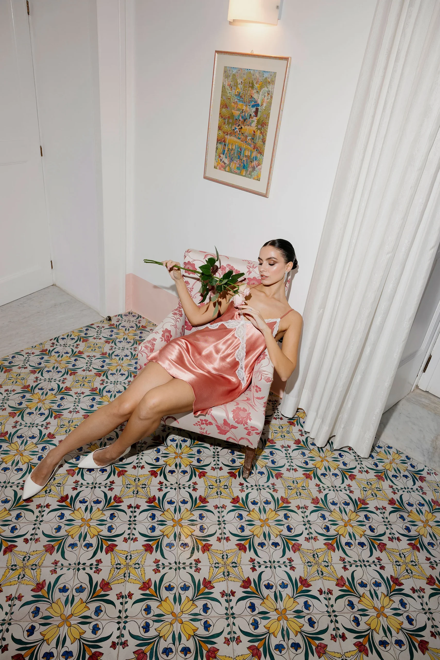 - Il tessuto è morbido e lucente: si tratta di un raso di viscosa. La viscosa viene prodotta dalla polpa di legno degli alberi. Attraverso un processo chimico, la polpa si trasforma in una massa densa dalla consistenza simile a quella del miele, appunto viscosa. Il raso di viscosa unisce le qualità del cotone e della seta. Da un lato è morbido, lucente e delicato sulla pelle come la seta, motivo per cui il tessuto è noto anche come seta artificiale. Dall’altro, è altrettanto resistente, traspirante e assorbente come il cotone
