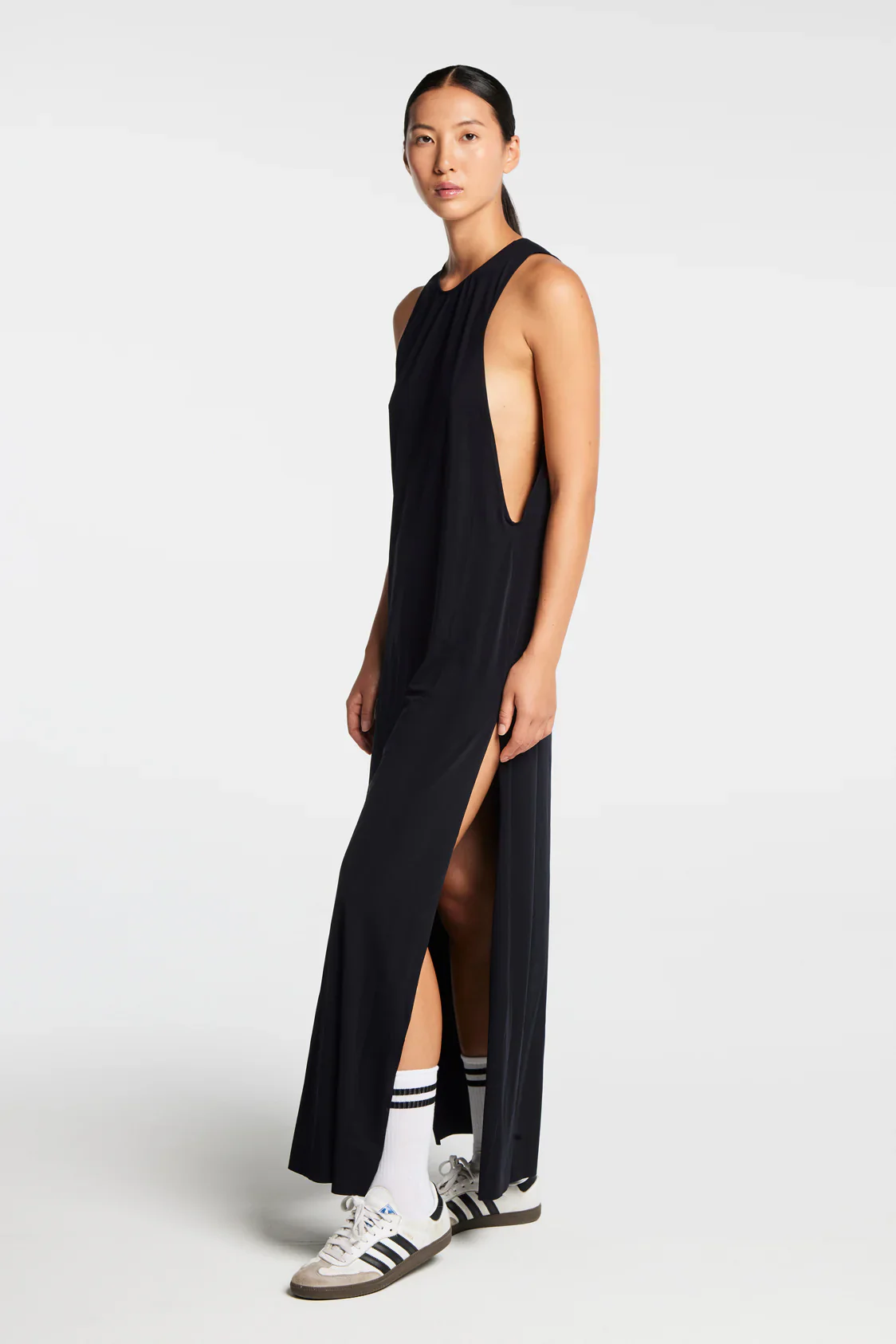 Abito in jersey con spacchi laterali e ampie aperture al corpo. Ideale per l’outdoor, il mare oppure da coordinare con t-shirt. Molto interessante anche l’abbinamento ad un tacco alto ed accessori per un’outfit da serata.