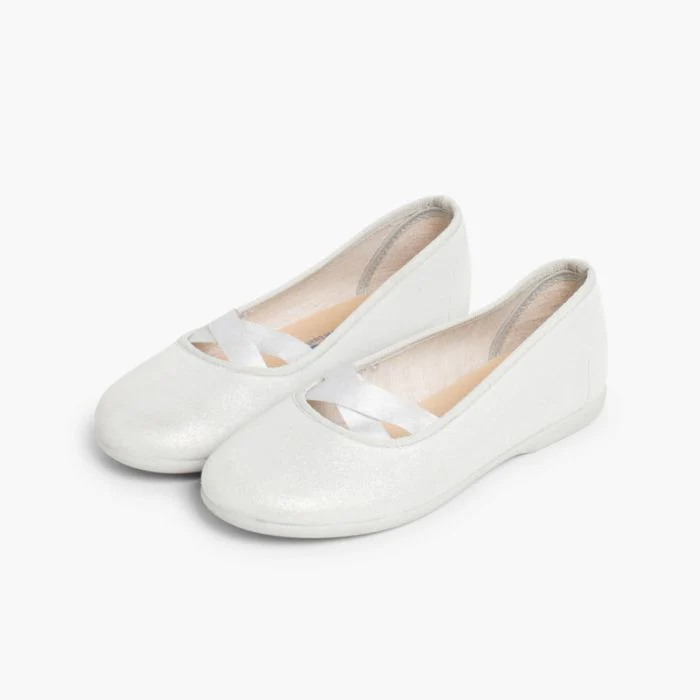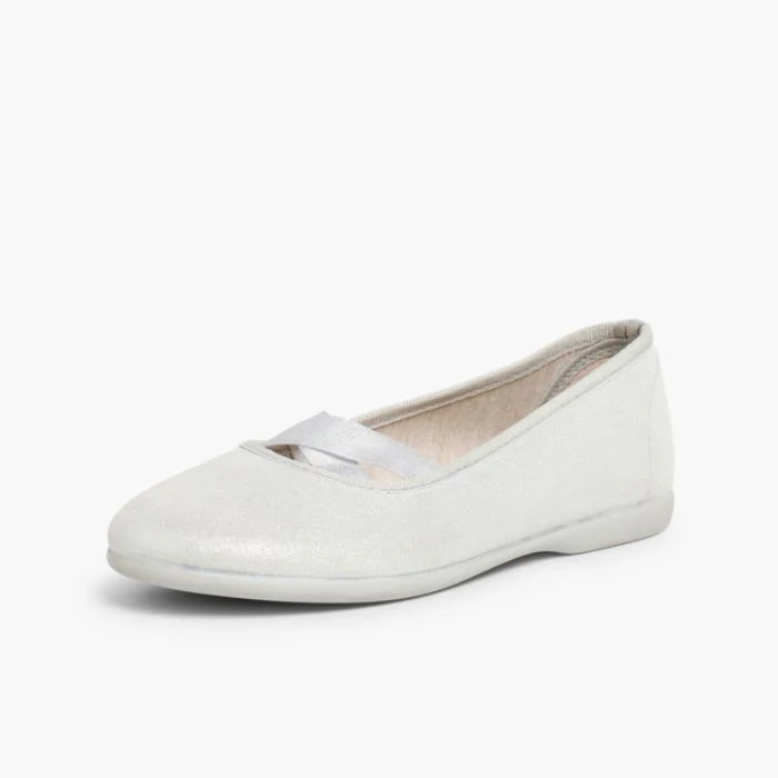 Queste ballerine in pelle scamosciata sono disponibili nei colori dorato e argentato. I dettagli laminati le rendono perfette se le vostre principesse devono partecipare ad un’occasione speciale. Gli eventi importanti richiedono sempre un look speciale e con queste ballerine non sbaglierai, grazie al loro nastro incrociato, che ricordano le delicate calzature che si usano nella danza e nel ballet.