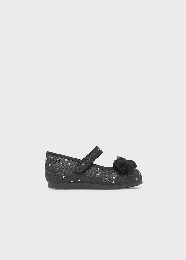 Scarpe dallo stile classico. Un ever green per uno stile elegante. Scarpa con fodera interna e soletta in pelle. Tutte le nostre scarpe sono realizzate con pelli senza cromo. Suola in gomma leggera e flessibile. Chiusura con velcro regolabile che garantisce una migliore aderenza del piede. Fiocco decorativo. Dettaglio glitter.