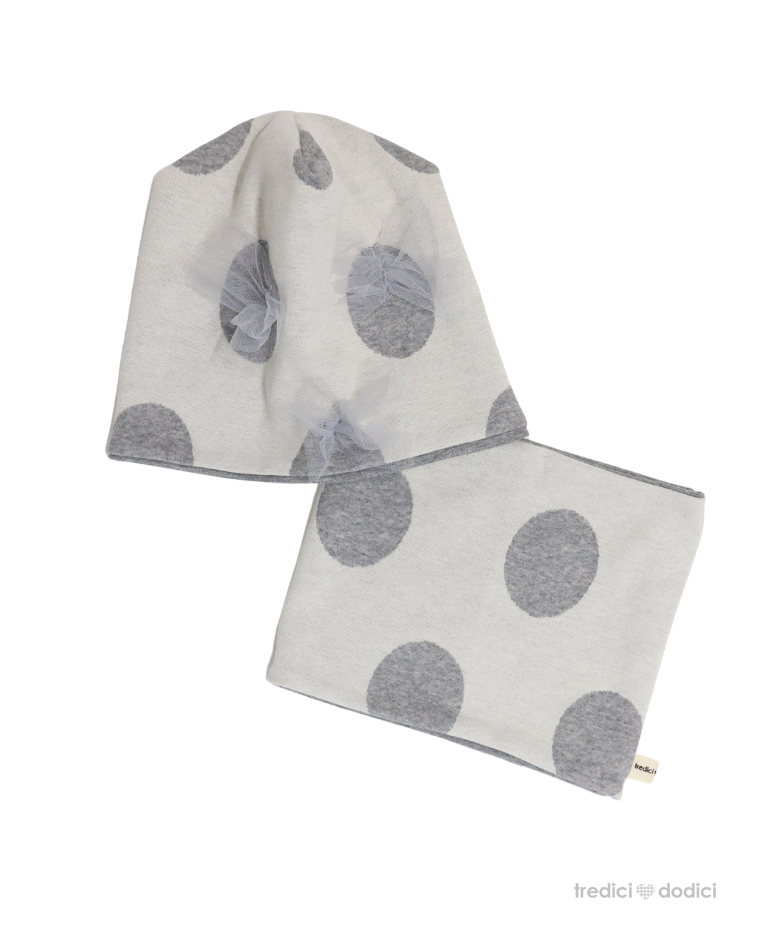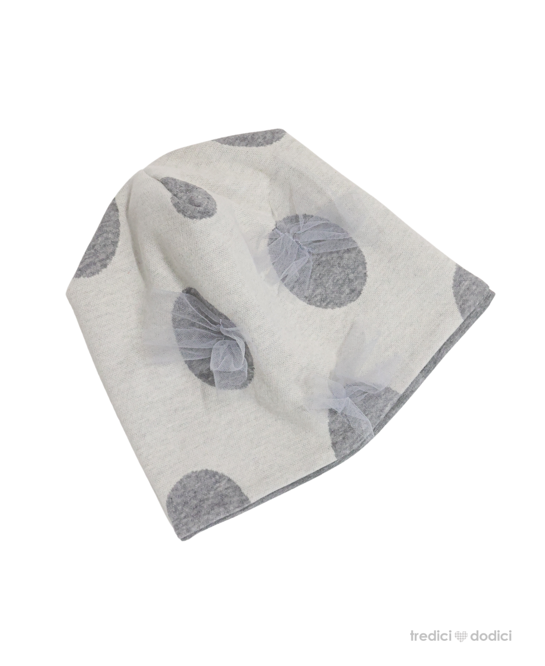 Berretta in cotone con tulle. Possibilità di abbinarlo con il collo dello stesso tessuto. Lo scaldacollo va acquistato separatamente.