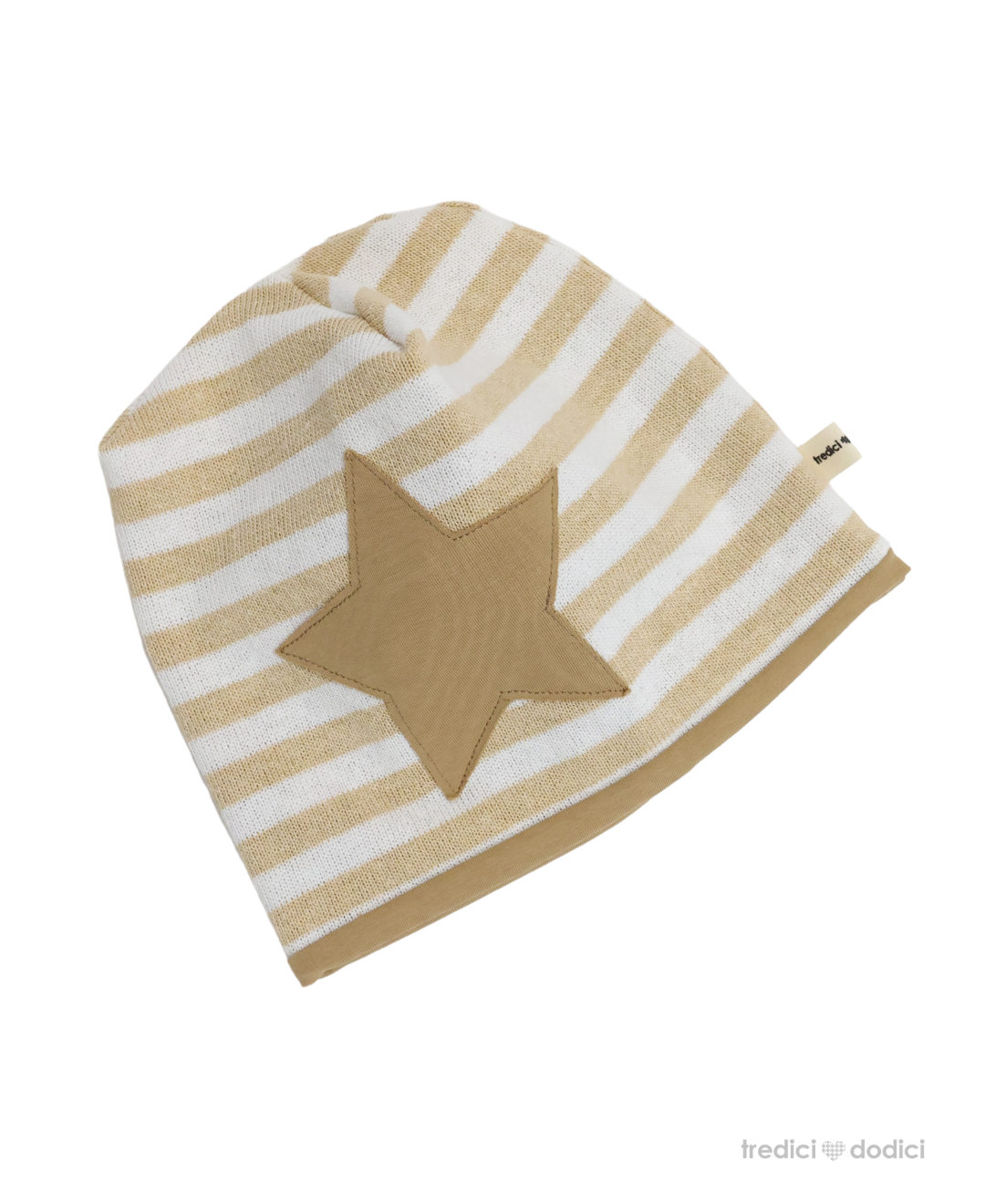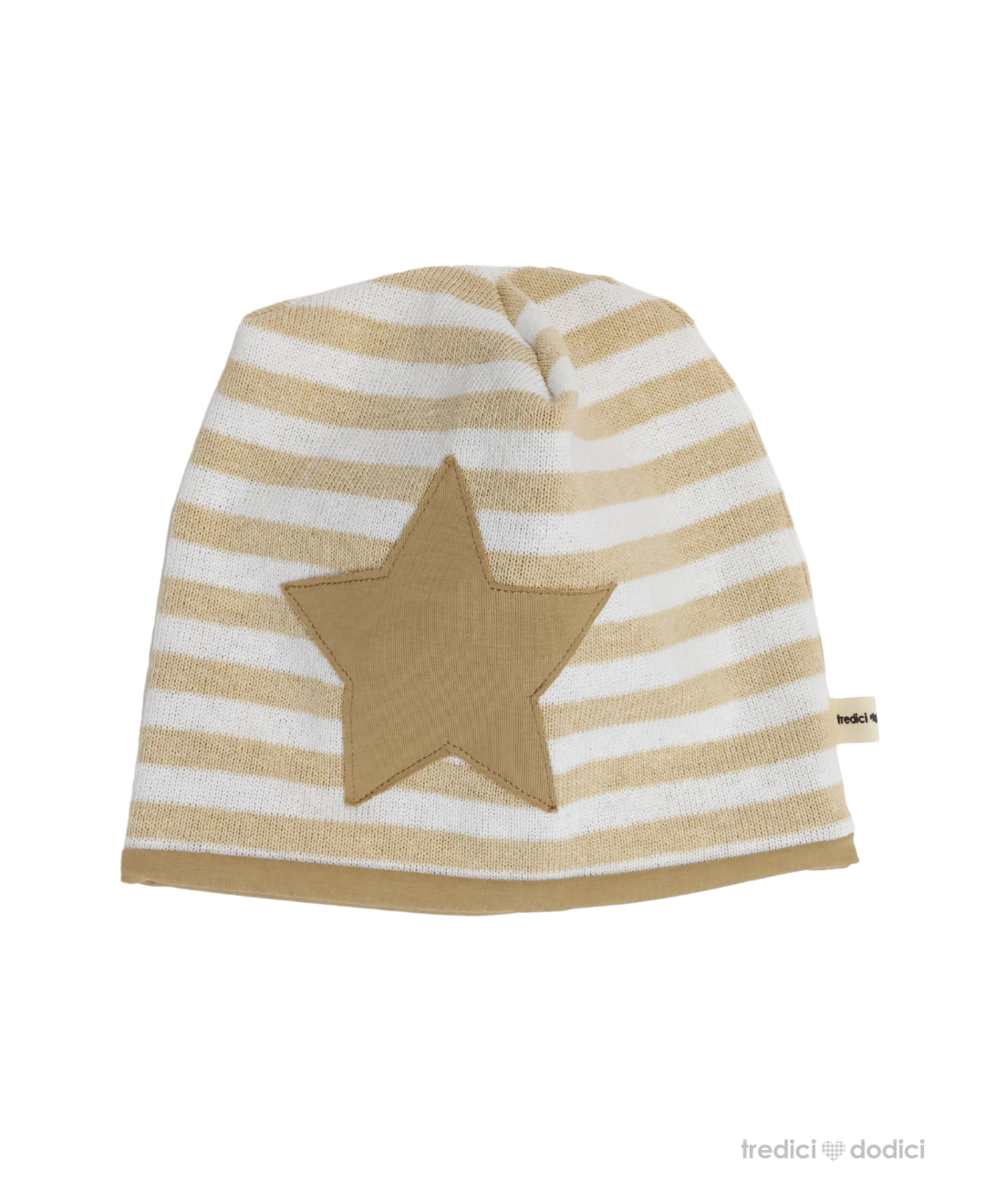 Berretta in cotone a righe con stella. Possibilità di abbinarla con il collo dello stesso tessuto. Lo scaldacollo va acquistato separatamente.