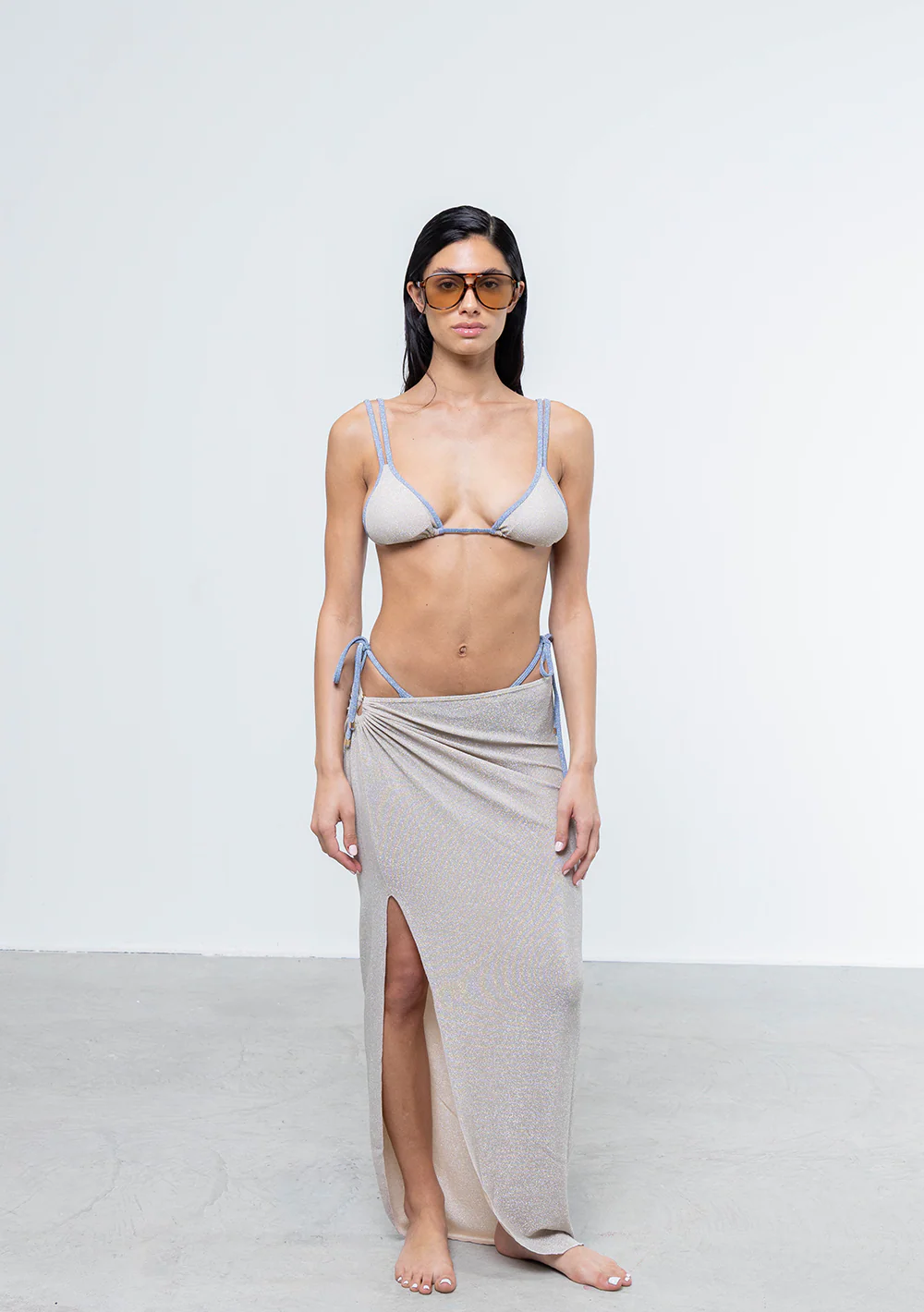 Un complemento glamour per ogni look da spiaggia. BIBI è una gonna leggera e brillante che si adatta a ogni fisico grazie alla suo tessuto elastico e all’anello laterale che slancia la figura. Il tessuto scivola sulla pelle con un tocco lussuoso, perfetto da indossare dal mattino alla sera.