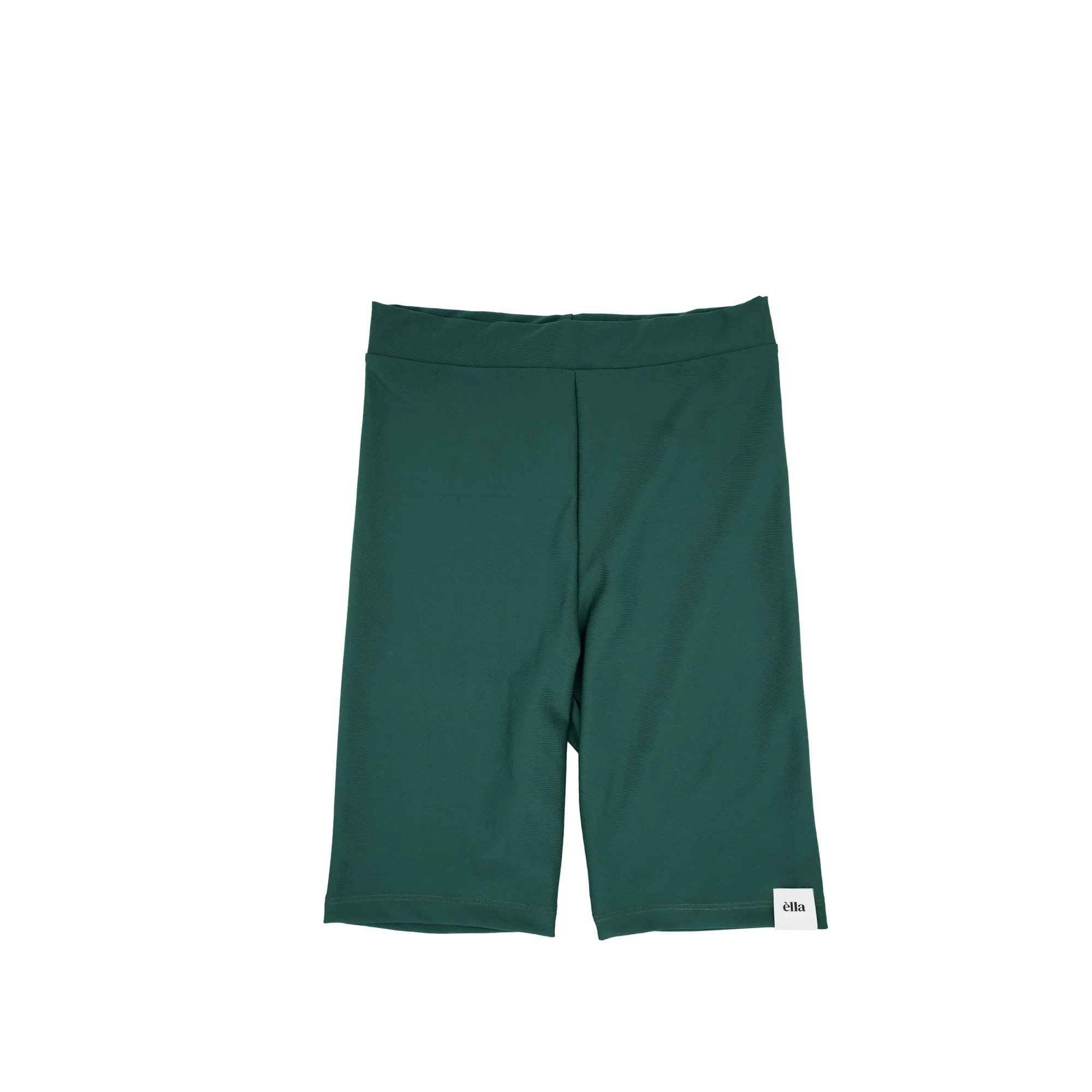 Pantaloncino a ciclista fin sopra il ginocchio, a vita alta, realizzato in tessuto elastico dall’effetto modellante e vestibilità aderente.