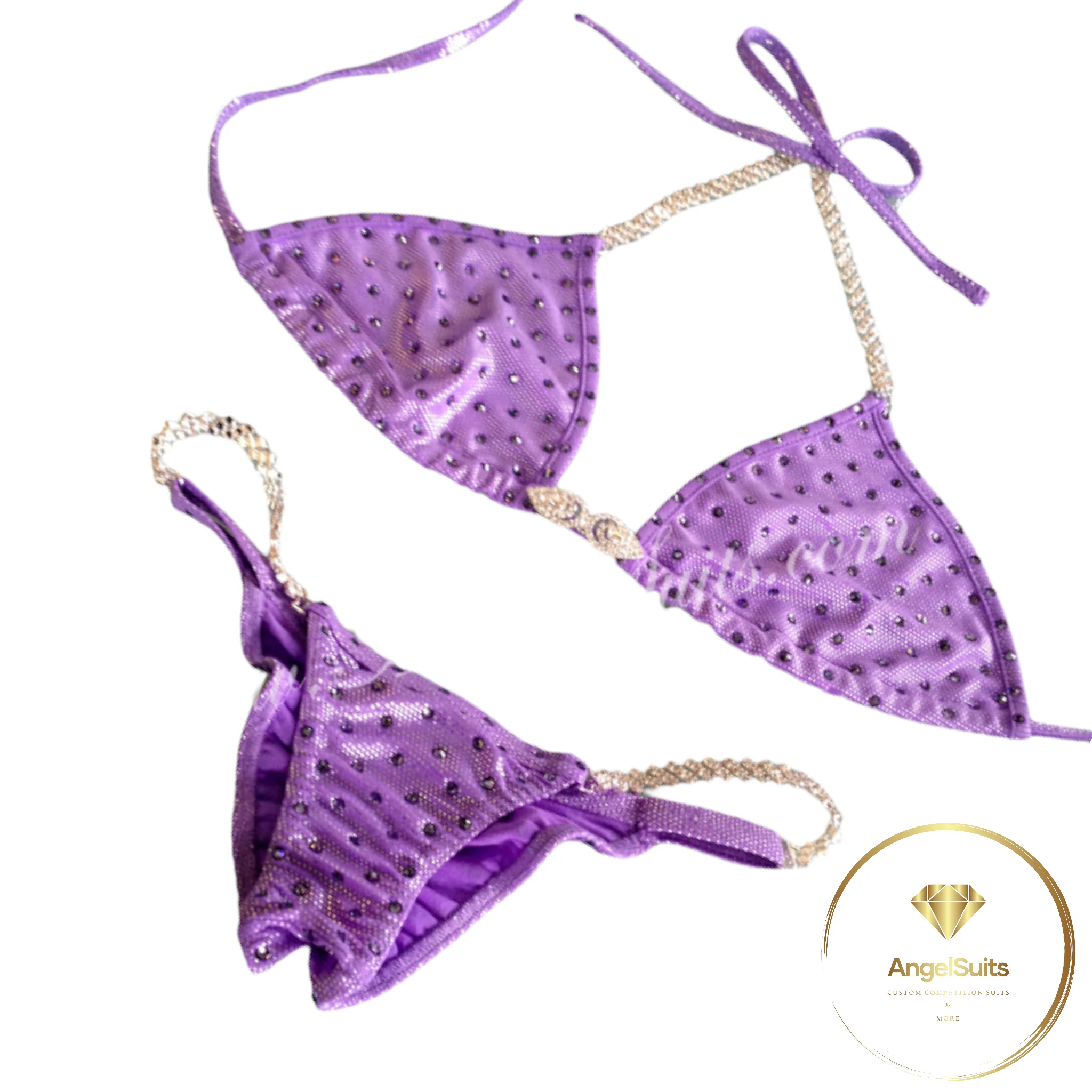 Bikini con applicazioni swarovski densità 2, personalizzabile con la scelta di modello reggiseno e slip, tessuto, taglie, connettori, imbottitura in base alle opzioni disponibili.