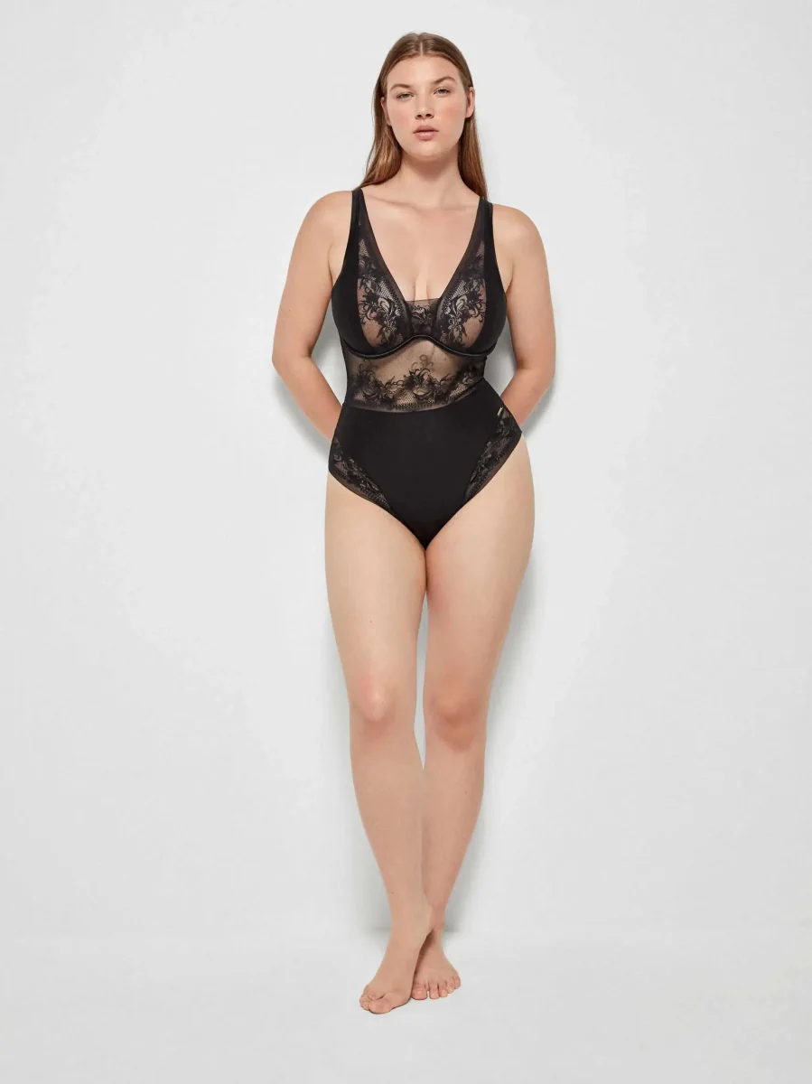 Body donna contenitivo modellante Sièlei in microfibra stretch con pizzo floreale 1978