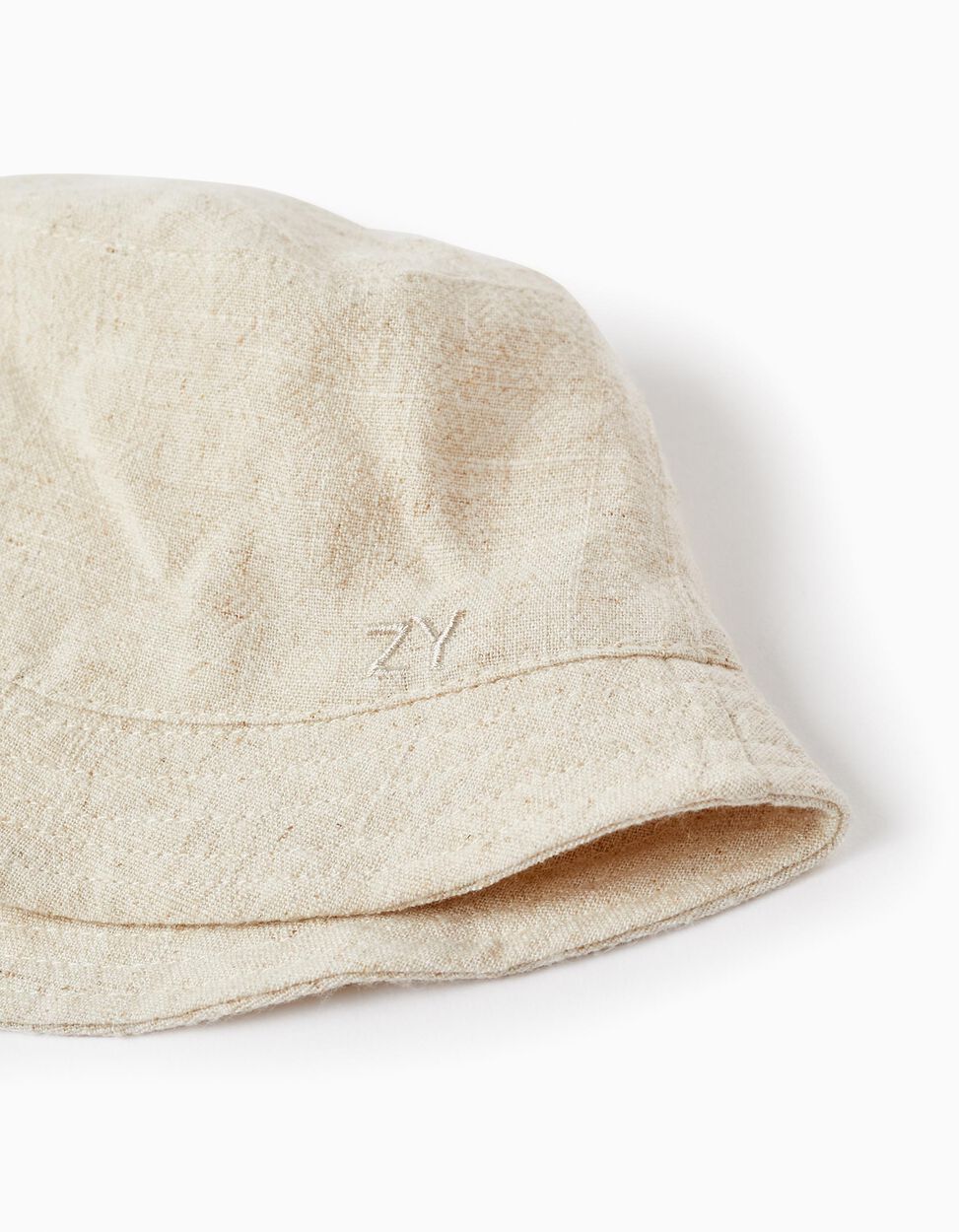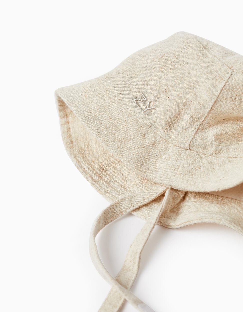Cappello beige per bambino, in misto viscosa e lino. Fodera interna in misto poliestere e cotone. Nastri laterali con chiusura a strappo per stringere, per le taglie da 12 m a 24 m. Un accessorio indispensabile per proteggere la pelle sensibile dei bambini nelle giornate soleggiate.