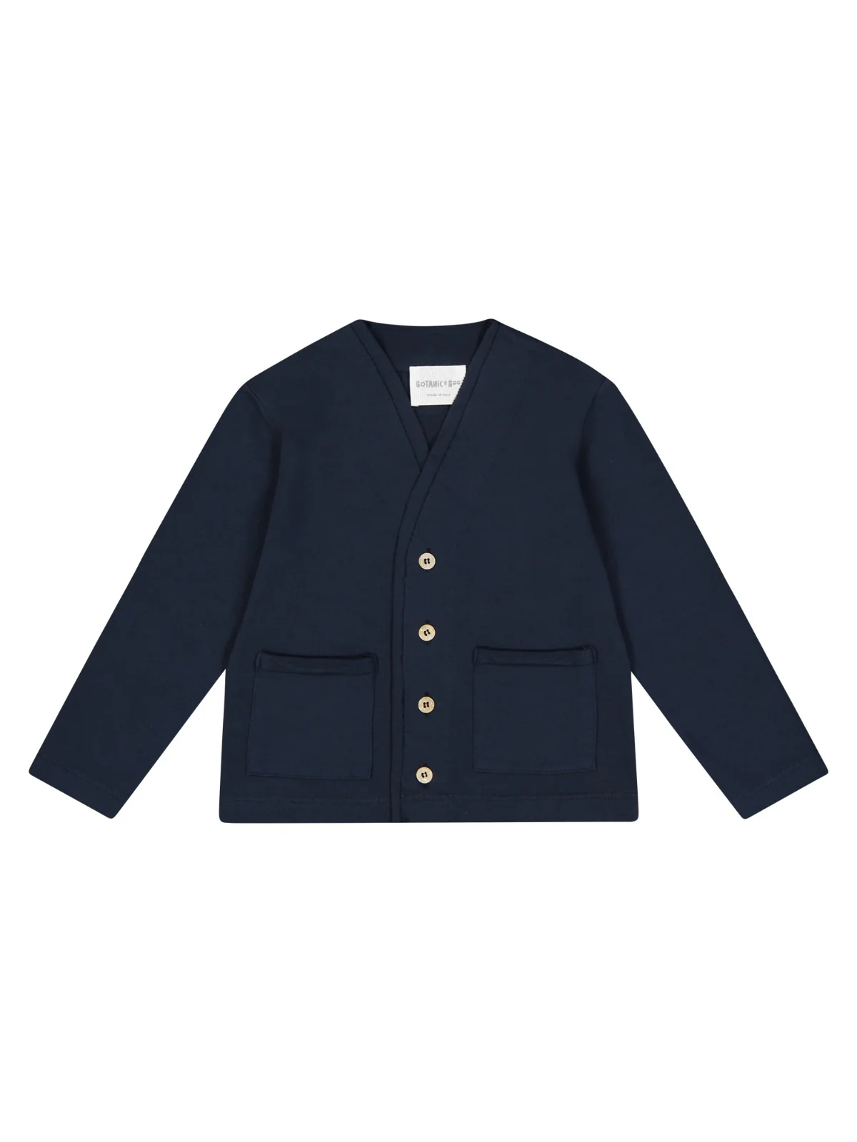 Cardigan con scollo a V in 100% cotone organico con abbottonatura frontale, taschine laterali a taglio vivo
