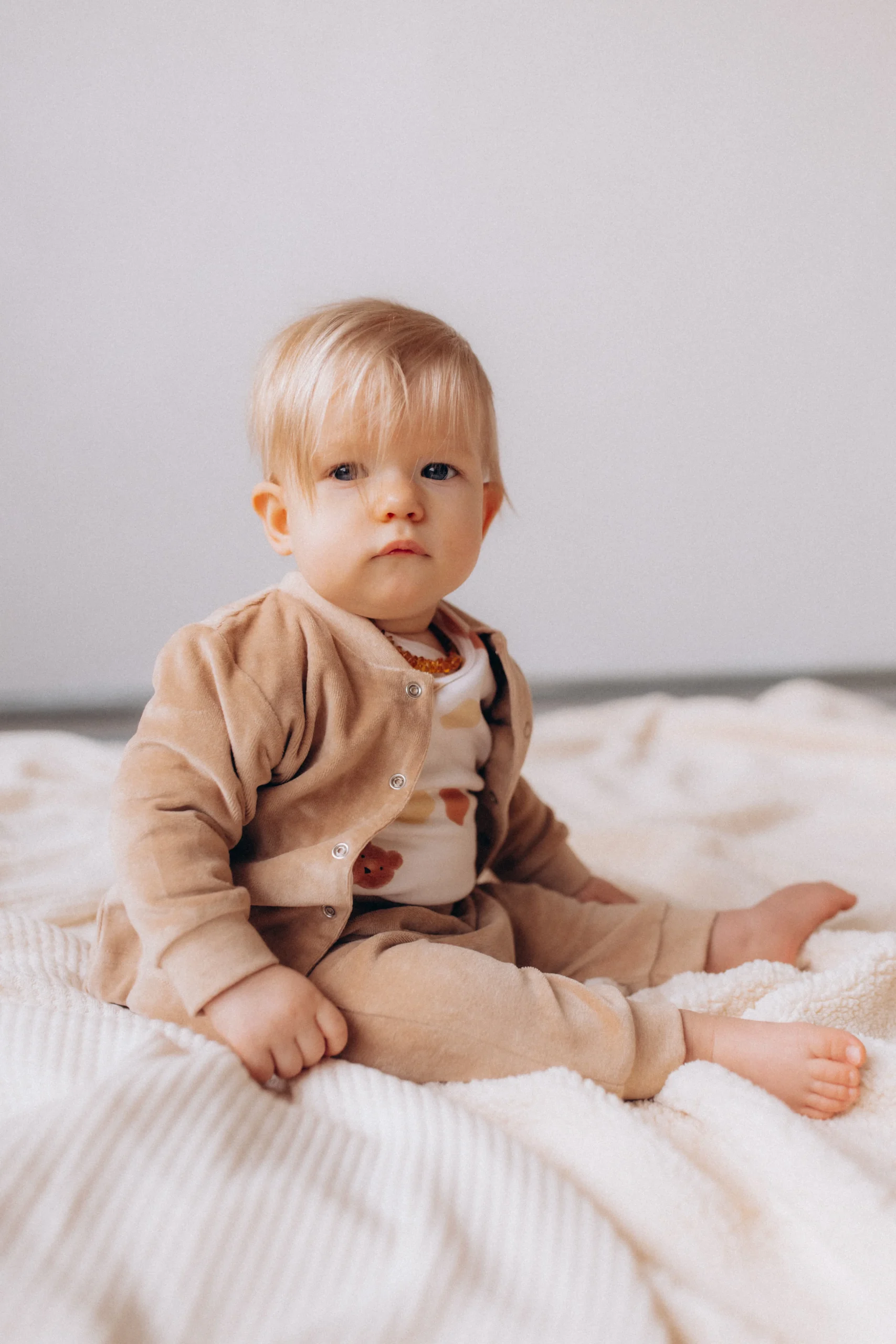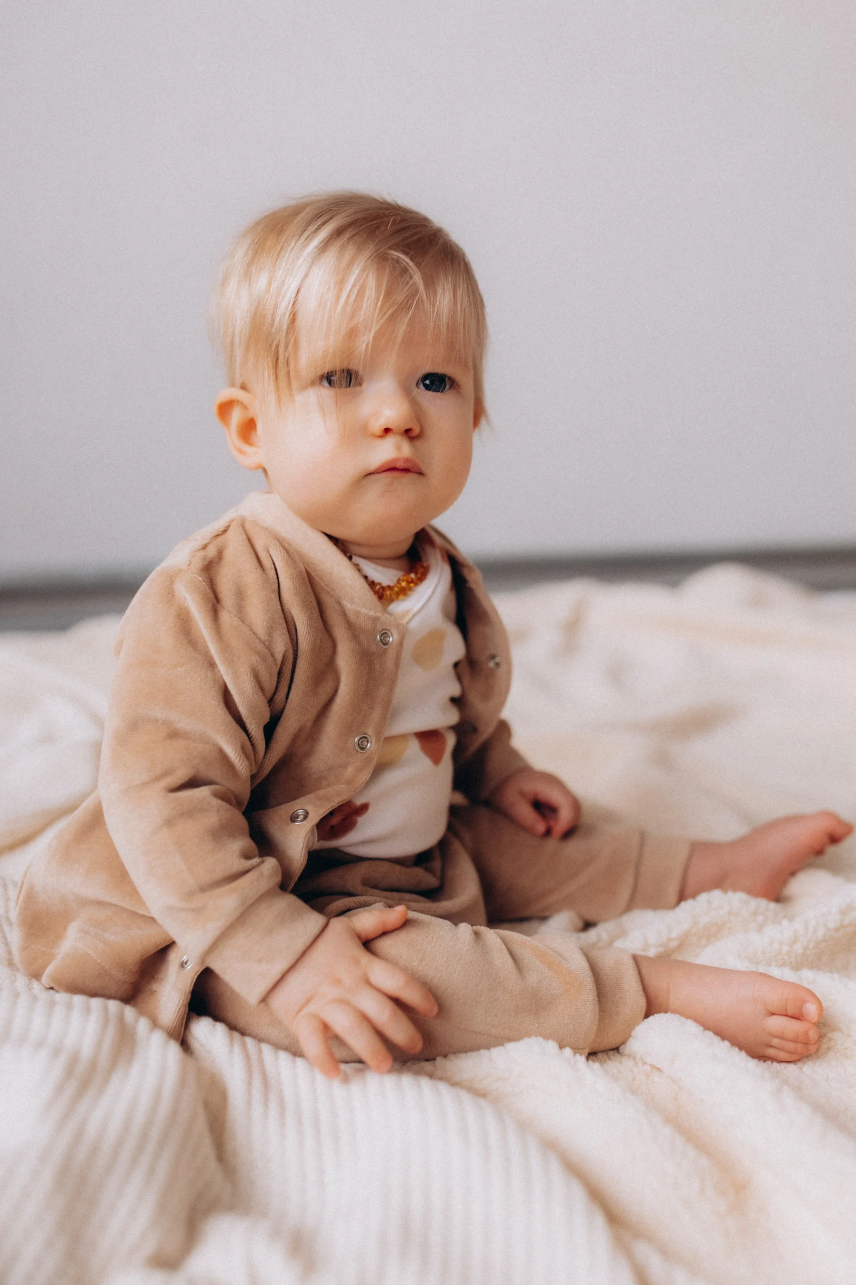 Avvolgi il tuo piccolo nel massimo comfort e lusso con il cardigan in velluto di cotone per bambini. Realizzato con il tessuto più morbido, è progettato per mantenere il tuo bambino caldo e accogliente mentre sembra irresistibilmente carino. Abbinalo al pantalone in ciniglia beige per un look completo e coordinato.