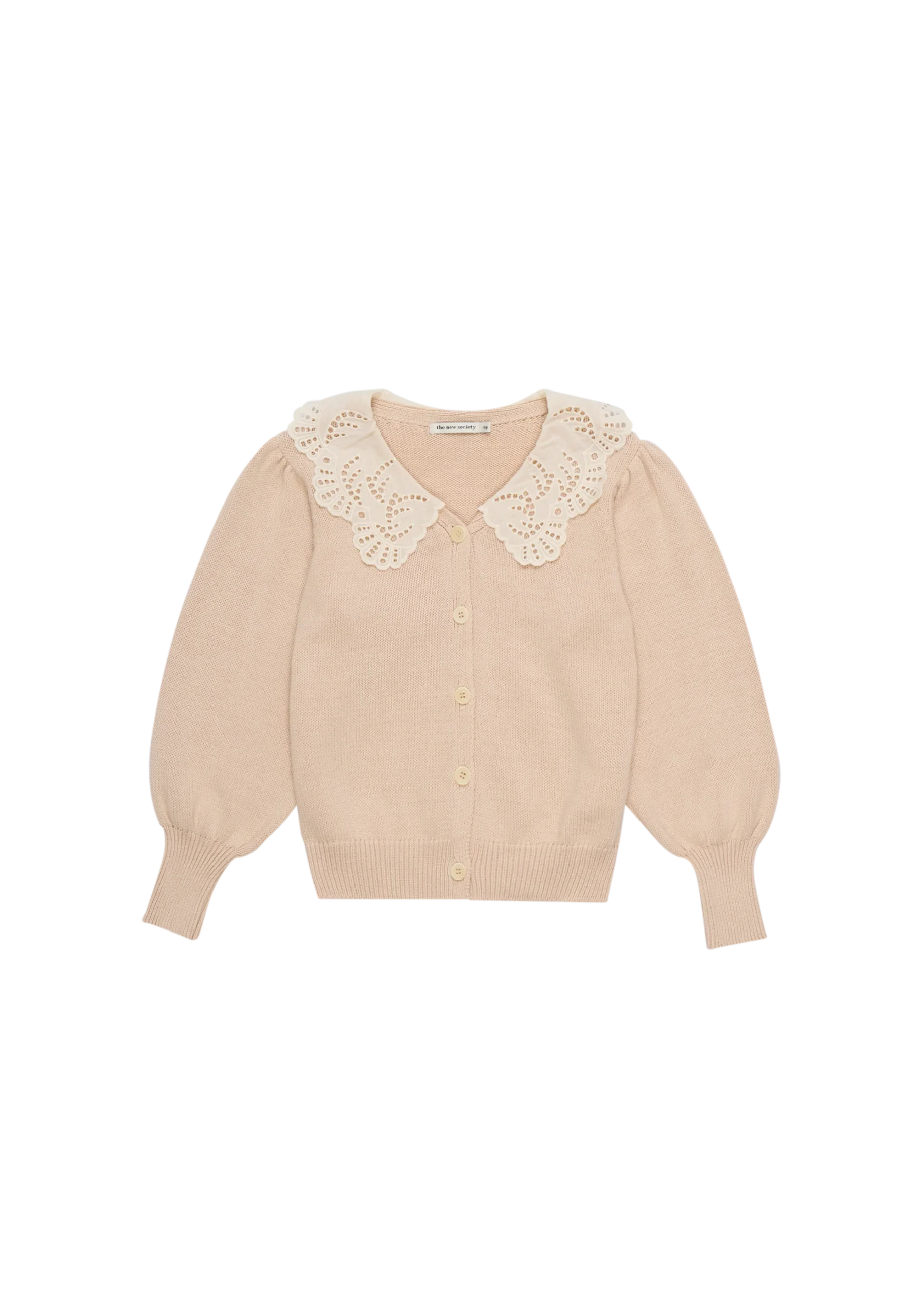 Cardigan in cotone organico con colletto morbido ricamato e bottoncini in madreperla