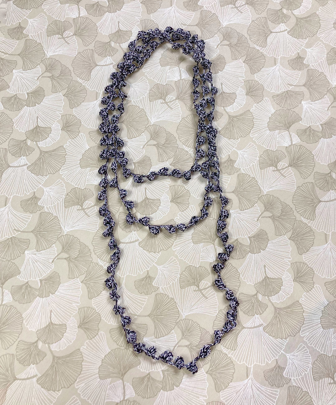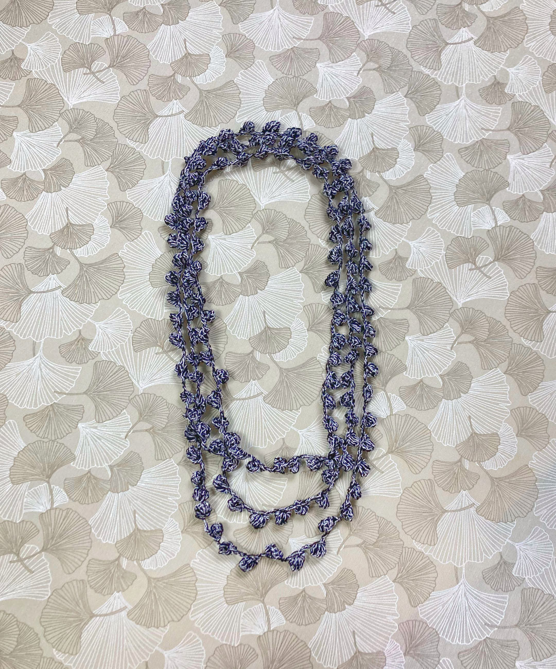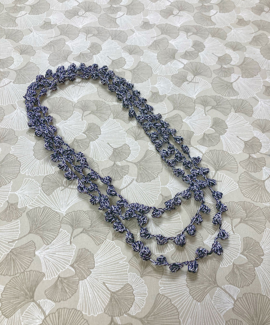 Collana fatta a mano all’uncinetto con palline piccole molto lunga per fare più giri. Adatta a tutte le stagioni.