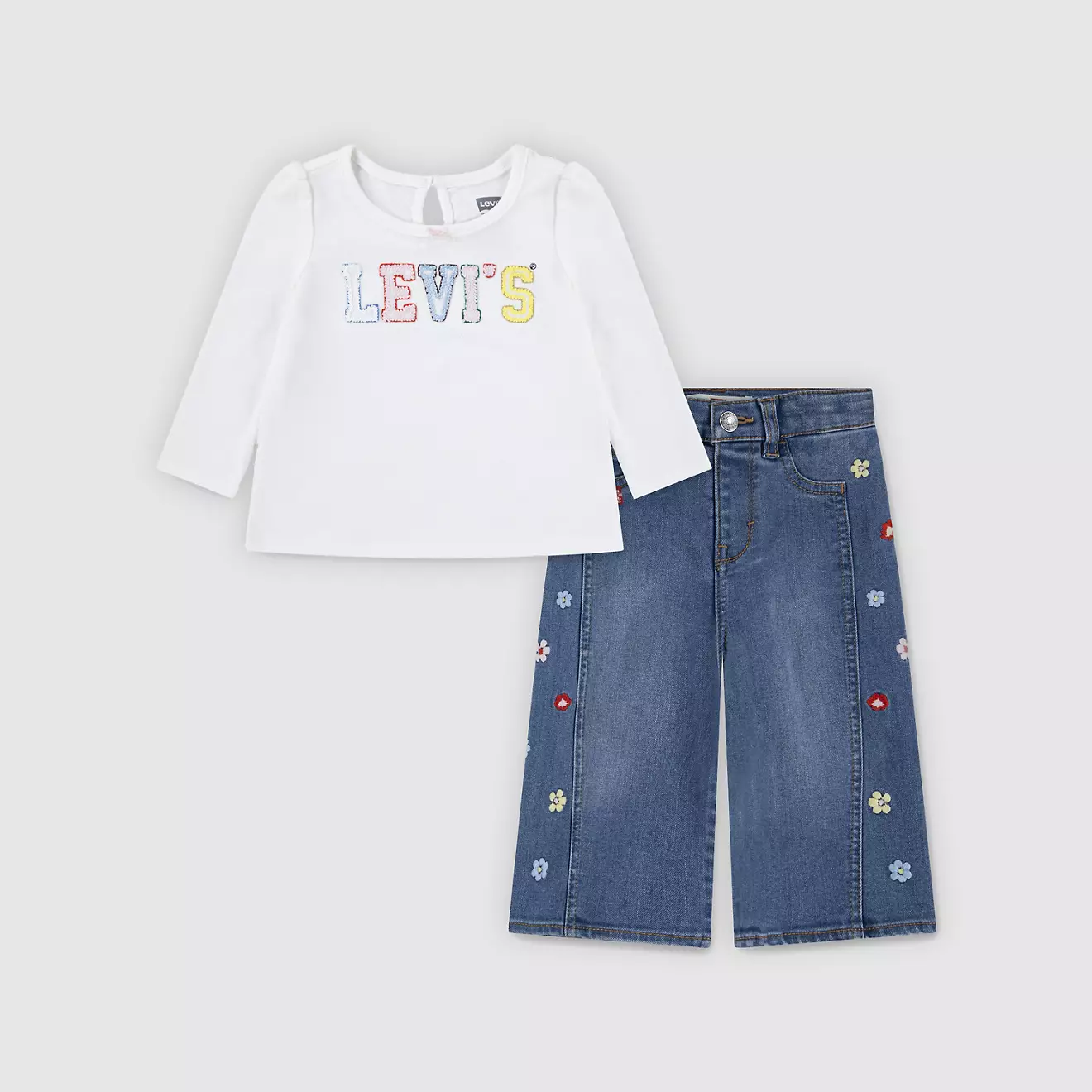 Preparati alla prossima avventura con questo grazioso set Levi’s®, caratterizzato da un top con grafica e comodi pantaloni in denim! Questo set unisce comfort e un look grazioso per creare un outfit comodissimo.