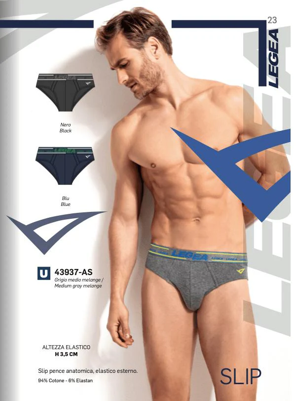 Tris slip uomo Legea, realizzati in morbido cotone bielastico rasato con elastico esterno. Composizione 95% cotone e 5% elastan. art. 43937