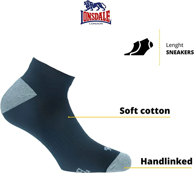 Calzini fantasmini sneakers unisex Lonsdale in cotone elasticizzato extra soft. Calzini sportivi, altezza caviglia, ideali per attività all’aperto, come ad esempio Trekking, Corse, ciclismo e Tennis. Calzini traspiranti in cotone di alta qualità, punta e tallone internamente in spugna, tessuto anti-odore contro il sudore. Polsino elastico che rende i calzini aderenti al piede, senza stringere […]