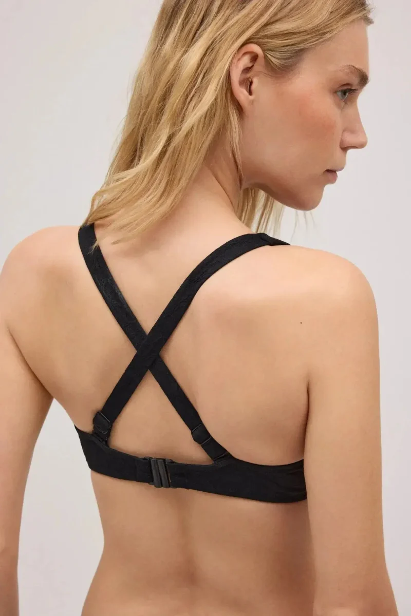 Set bikini a due pezzi. Reggiseno con ferretto e senza imbottitura in coppa C e scollatura annodata, con slip midi con arricciature sui lati per adattarla alla tua taglia. Costume super contenitivo e riduttore che modella e snellisce la figura, tessuto con motivi floreali. Chiusura a moschettone sulla schiena e spalline multiposizione. Composizione 96% poliammide […]