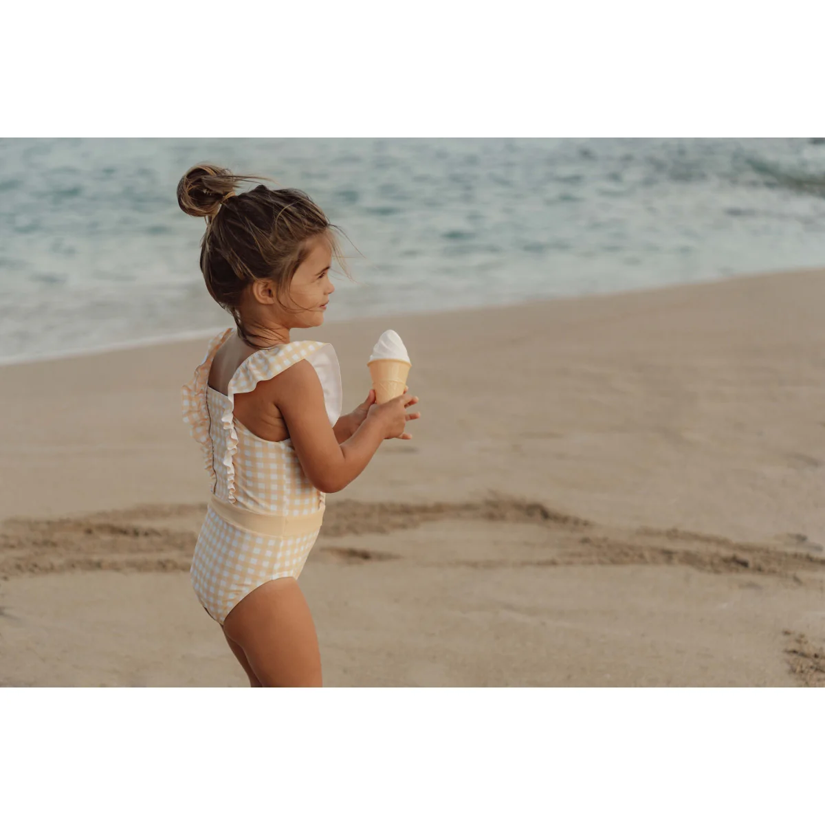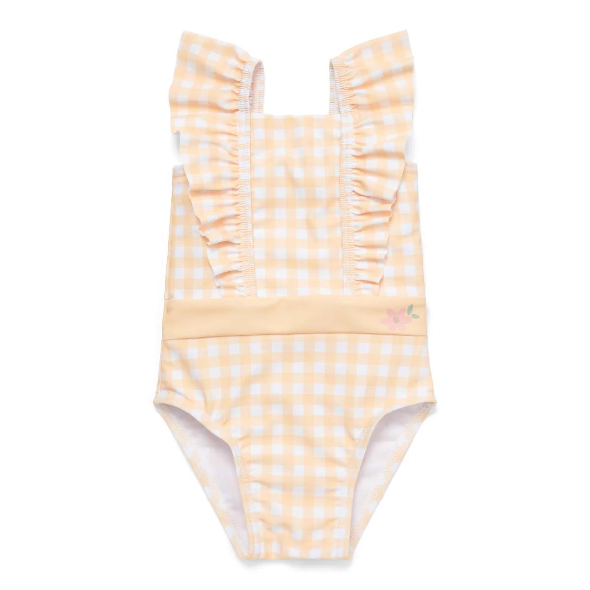 Nuota, sguazza e gioca tutto il giorno! Andiamo in spiaggia! Tutto ciò di cui hai bisogno è questo grazioso costume intero con volant in tessuto UPF59+.