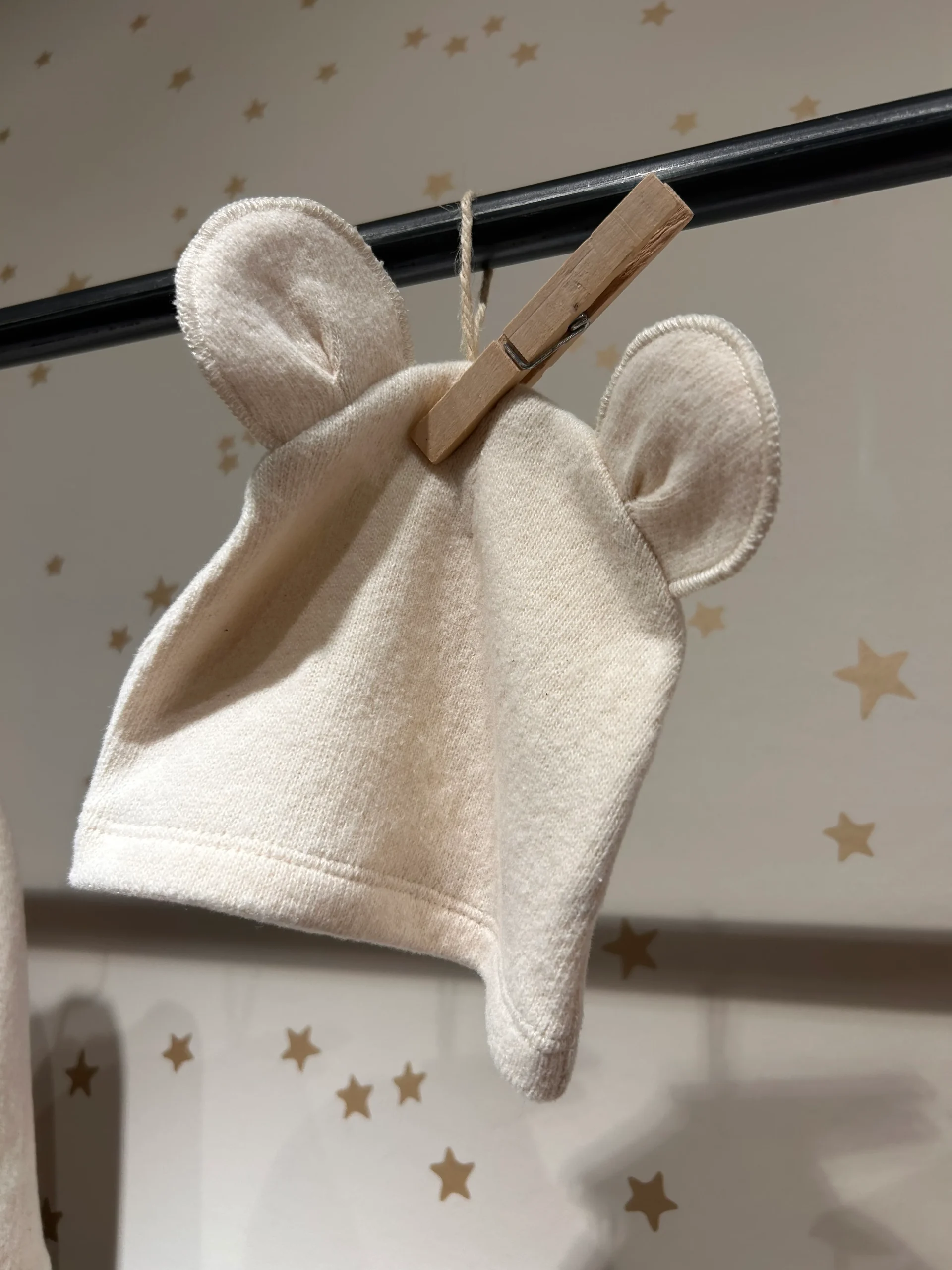 Cuffietta in caldo cotone color avorio con tenere orecchie orsetto.