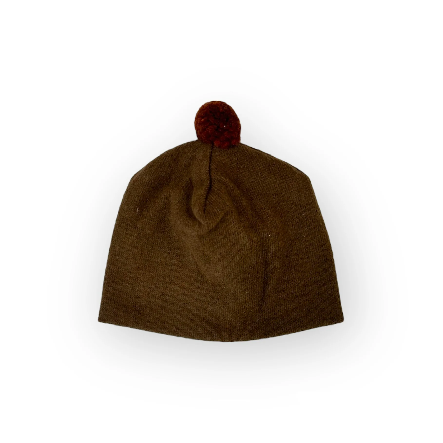 Cuffia in morbidissimo caldo cotone color cacao con pompon color ruggine