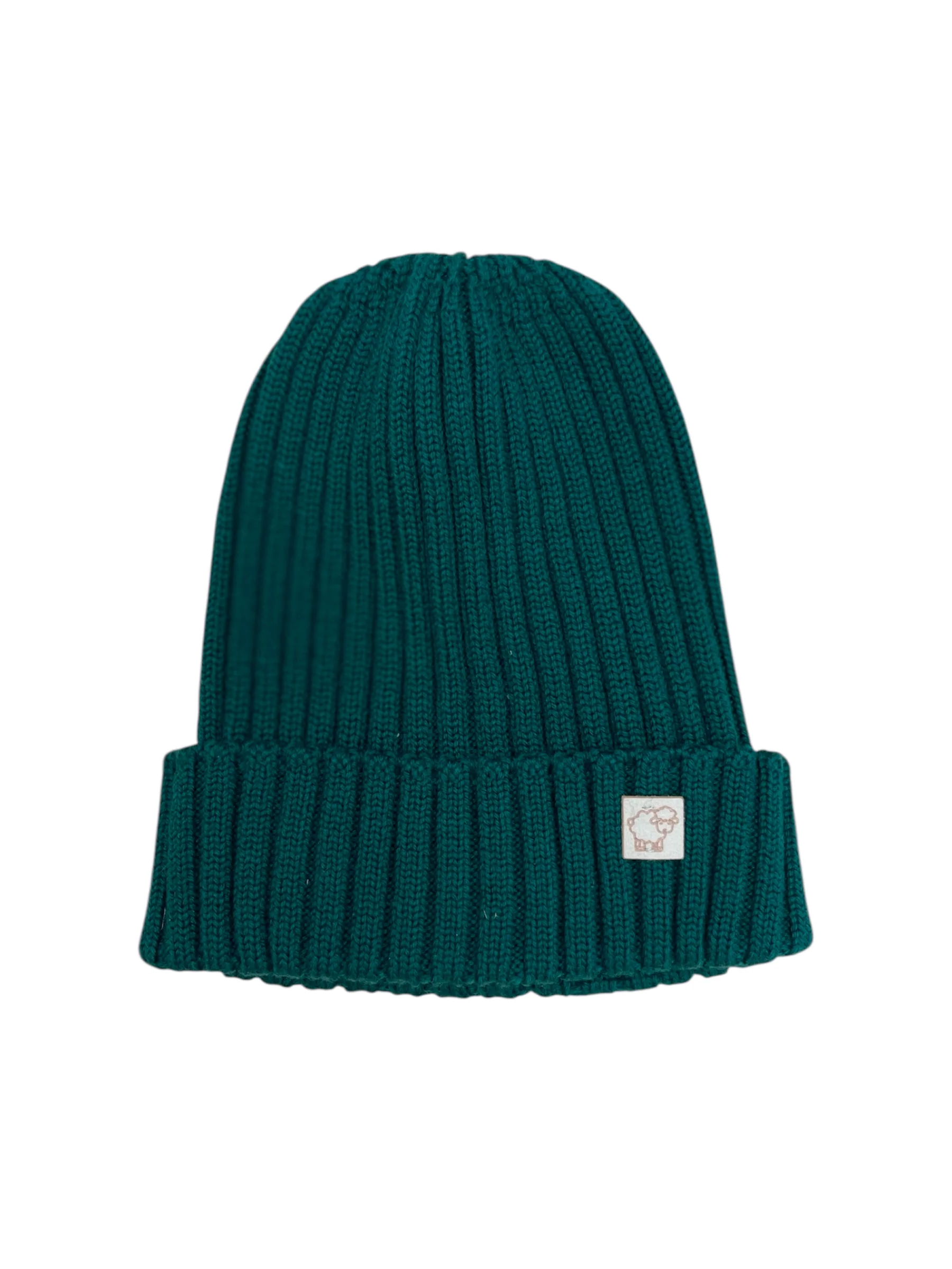 Cuffia verde pura lana merino a coste