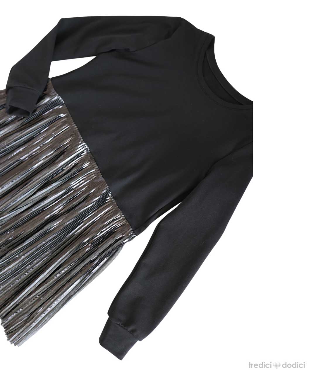 Felpa donna in felpa invernale con balza plissettata di cotone che parte all’altezza della vita.
