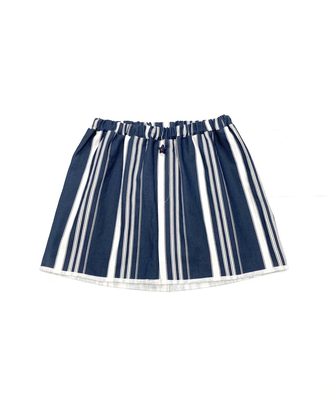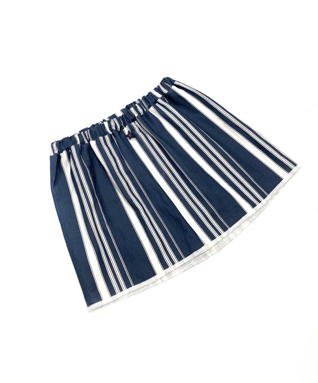 Gonna di lino con risvoltino ed elastico in vita, che si può accorciare qualora servisse ridurlo di qualche cm. Bottone in avorio naturale proveniente da un frutto di palma chiamato Tagua. Di seguito le misure: – vita da 68 a 94 cm. – fianchi 108 cm. – lunghezza 38cm circa.