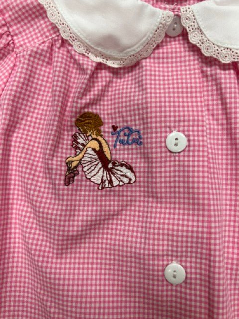 Grembiule asilo bambina con abbottonatura centrale Siggi ricamo Tutù a quadretti rosa 3882