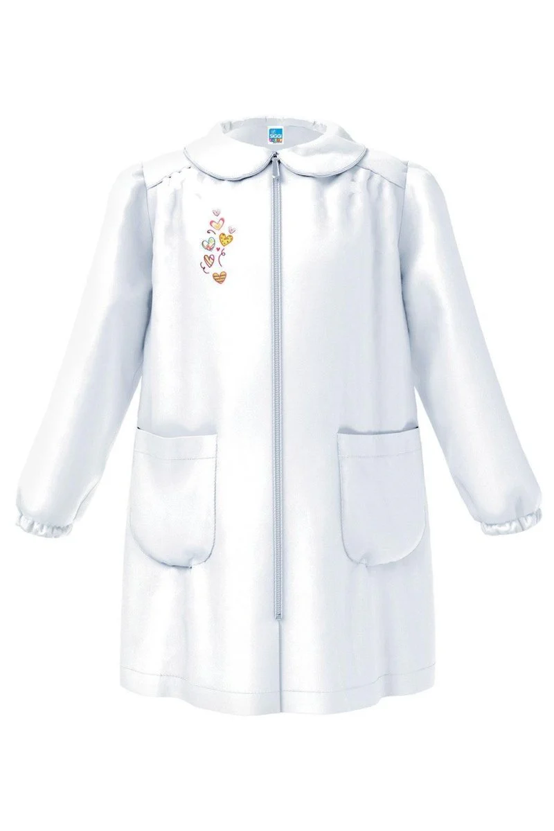 Grembiule Scuola Made in Italy – Asilo Bambina Siggi ricamo Cuori 65% Poliestere, 35% Cotone Apetura centrale con zip, Colletto Bianco con Ricamo Tinta unita bianco art. 4031