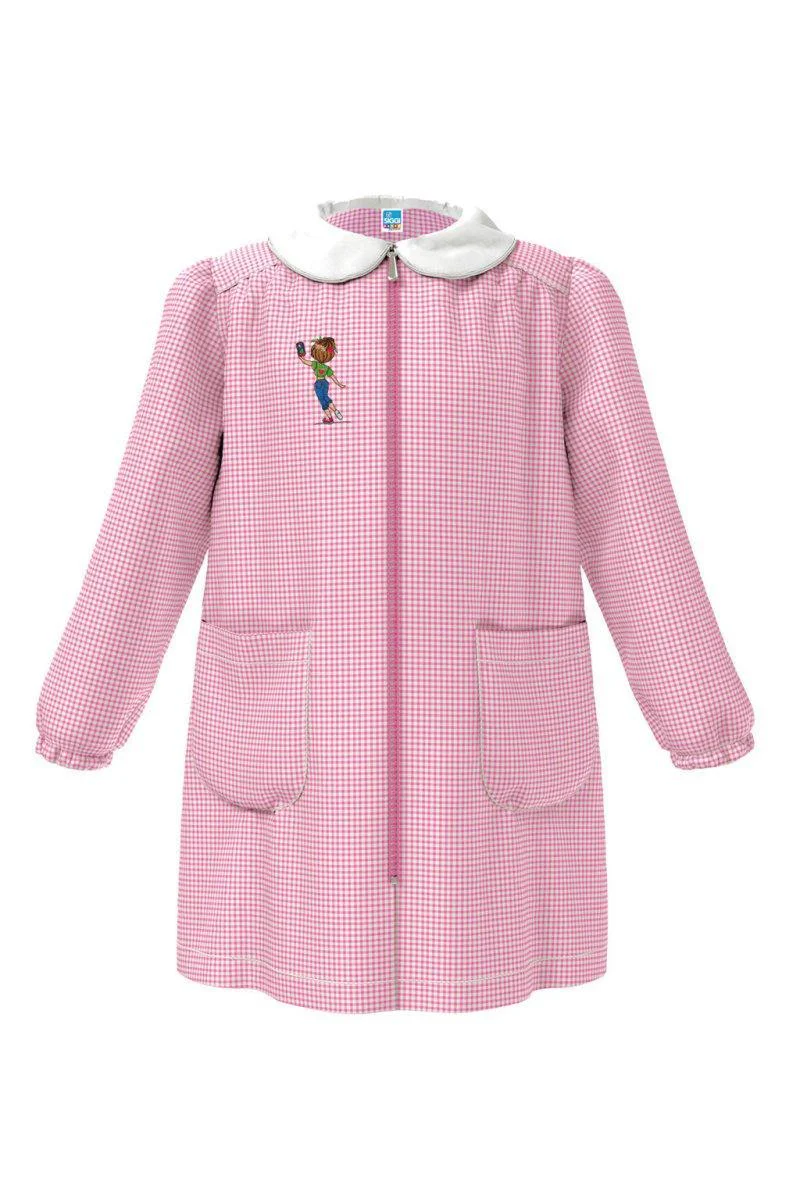 Grembiule asilo bambina con zip centrale Siggi ricamo Selfie a quadretti rosa 3883