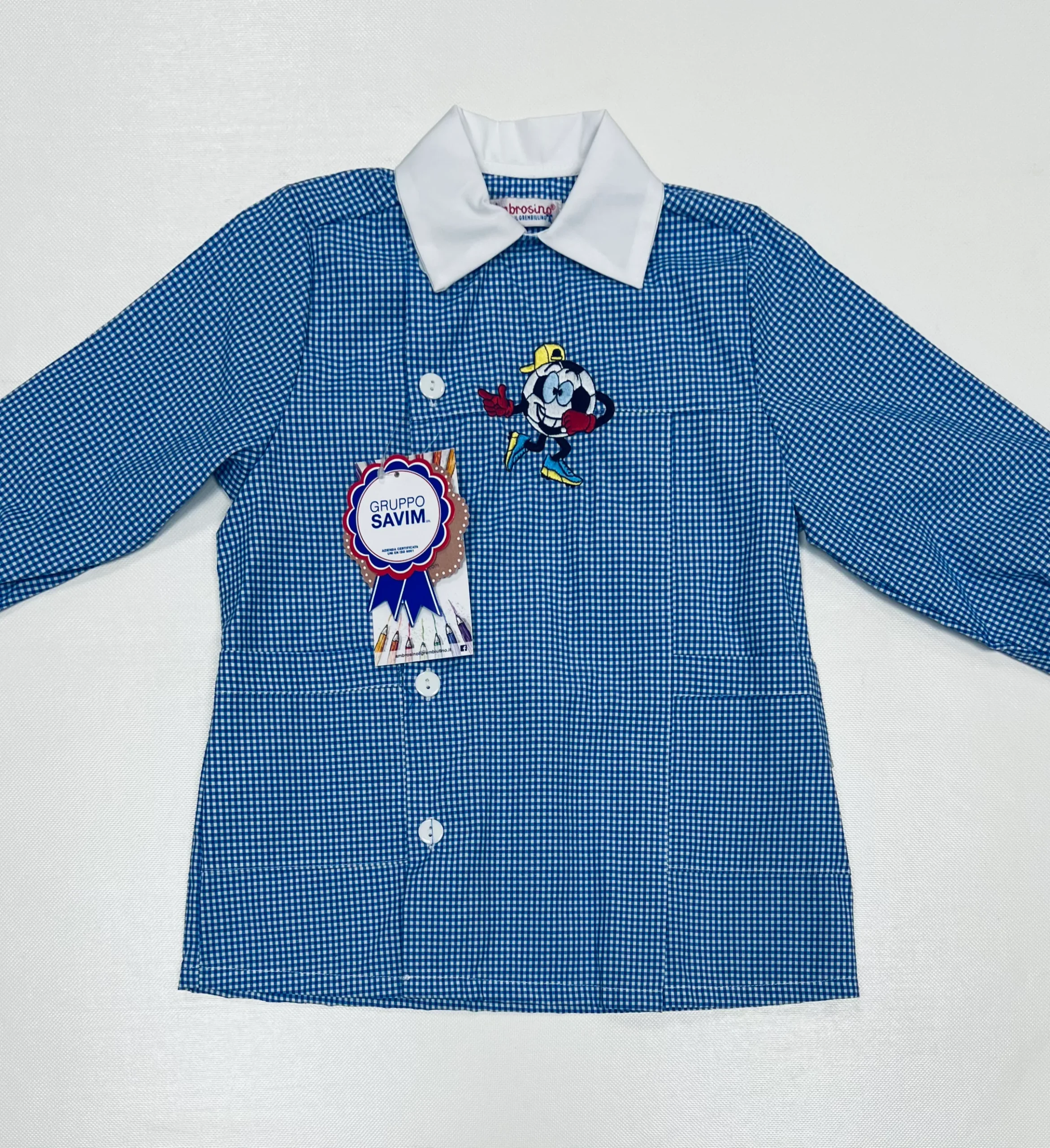 - Grembiule Scuola Made in Italy – Asilo Bambino Colore Quadretti Azzurri / Celesti Ambrosino ricamo Calcio