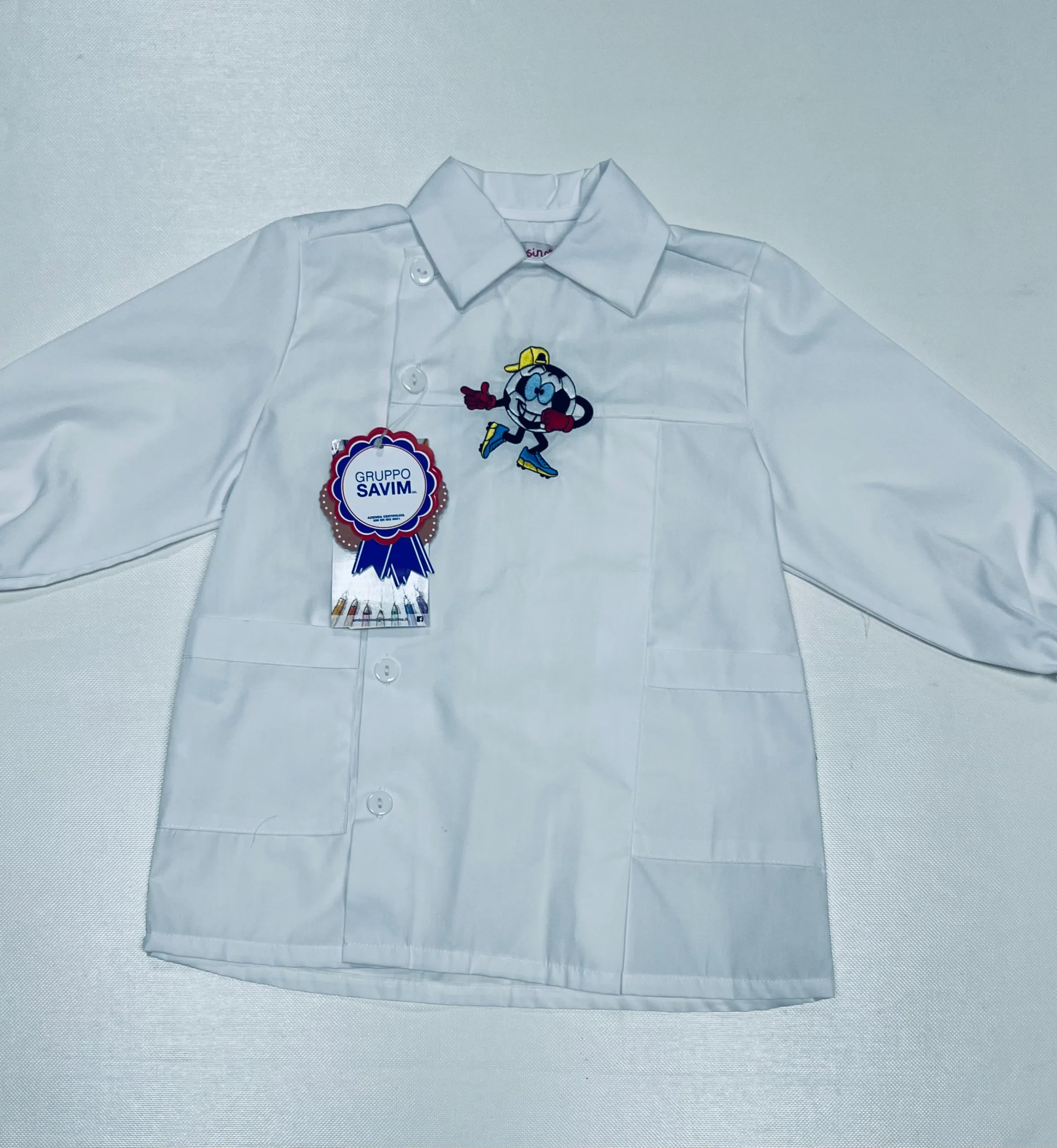 Grembiule Scuola Made in Italy – Asilo Bambino Colore Bianco Ambrosino ricamo Calcio 65% Poliestere, 35% Cotone Abbottonatura laterale con Bottoni, Colletto Bianco non rimovibile. art. R501