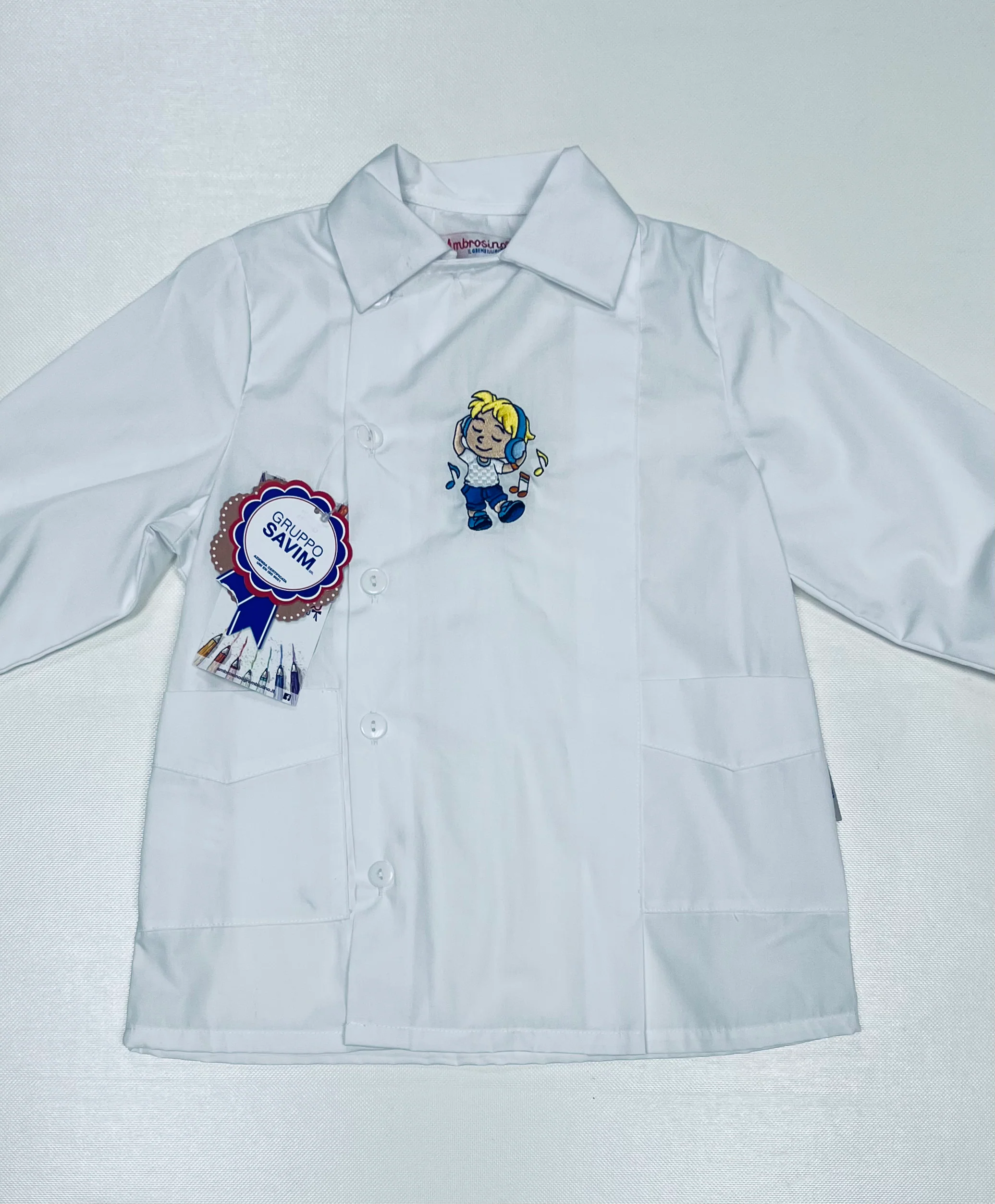 - Grembiule Scuola Made in Italy – Asilo Bambino Colore Bianco Ambrosino ricamo Music