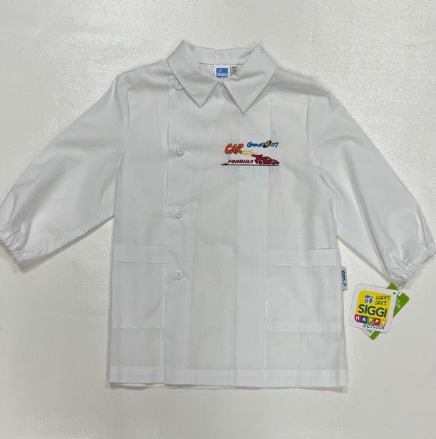 Grembiule asilo bianco bambino con abbottonatura laterale Siggi ricamo Car 3888
