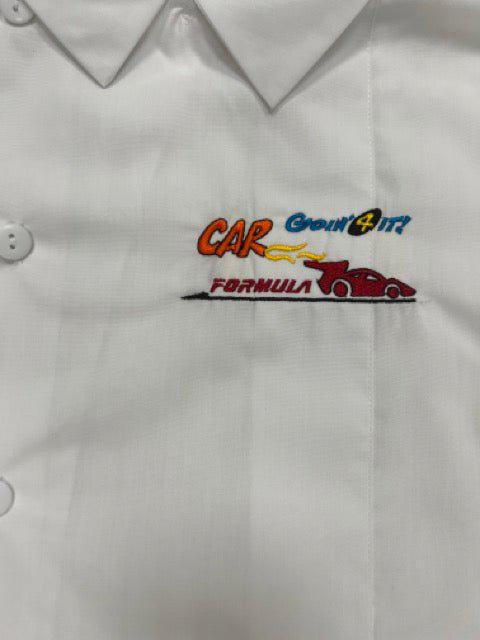 Grembiule Scuola Made in Italy – Asilo Bambino Bianco Siggi ricamo Car 65% Poliestere, 35% Cotone Abbottonatura laterale con Bottoni, Colletto Bianco non rimovibile art. 3888