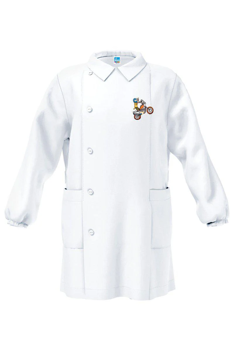 Grembiule asilo bianco bambino con abbottonatura laterale Siggi ricamo Cross Enduro 4039