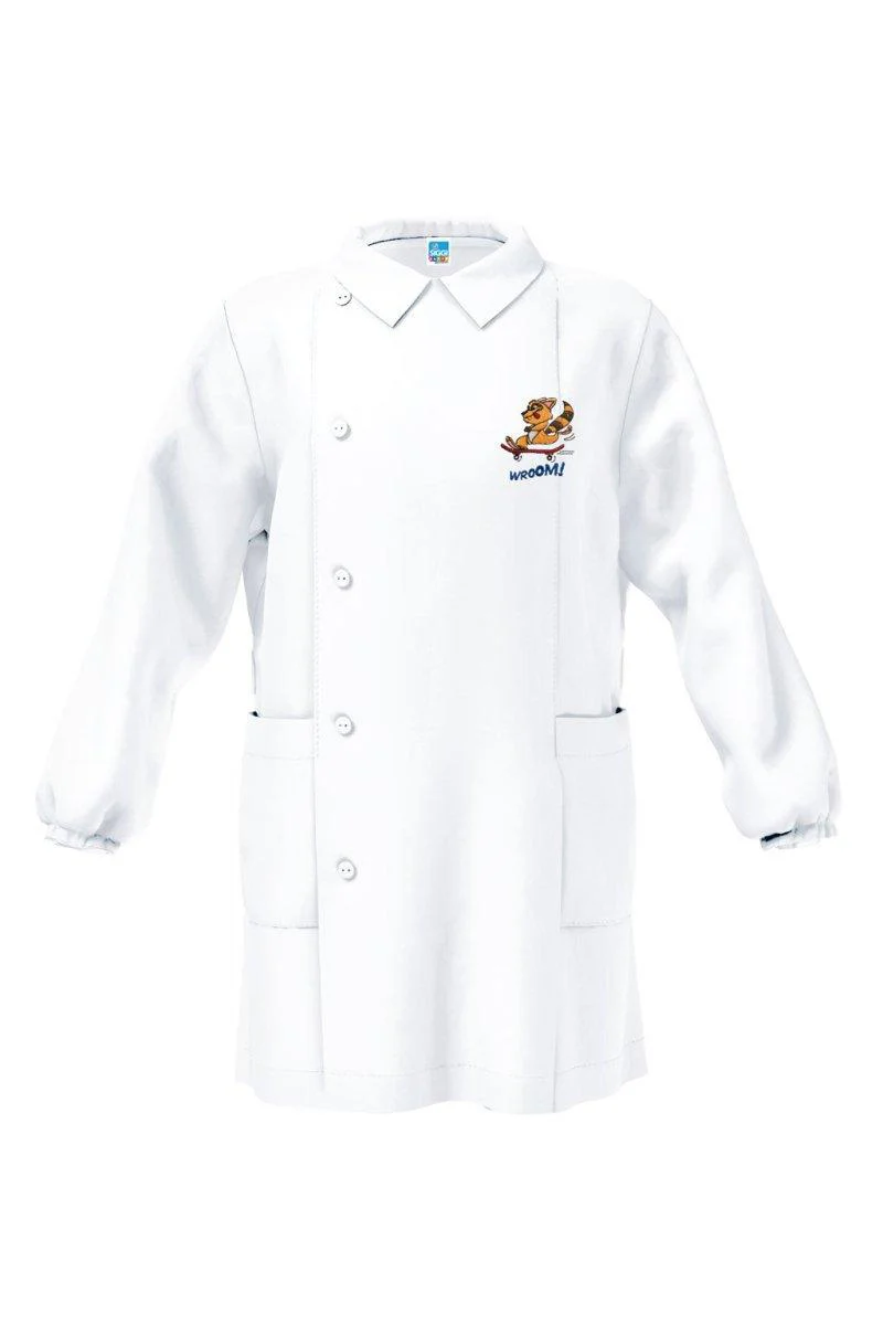 Grembiule asilo bianco bambino con abbottonatura laterale Siggi ricamo Vroom 3894