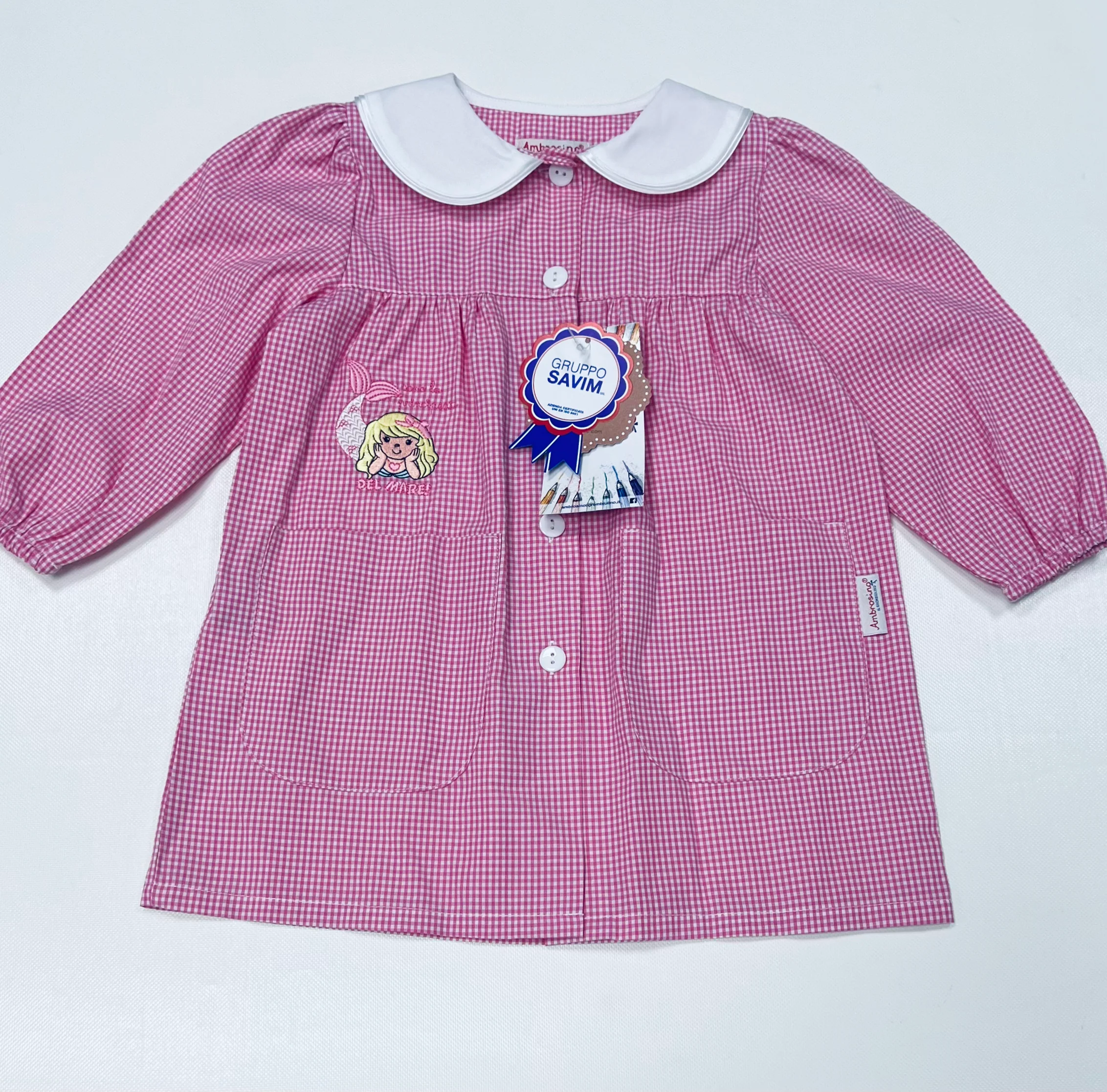 - Grembiule Scuola Made in Italy – Asilo Bambina Colore Quadretti rosa Ambrosino ricamo Sirenetta.