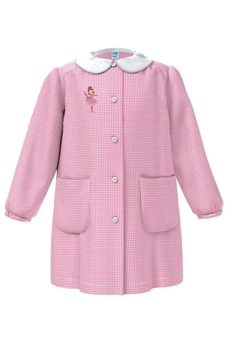 Grembiule asilo quadretti rosa bambina con abbottonatura centrale centrale Siggi ricamo Ballerina 4028
