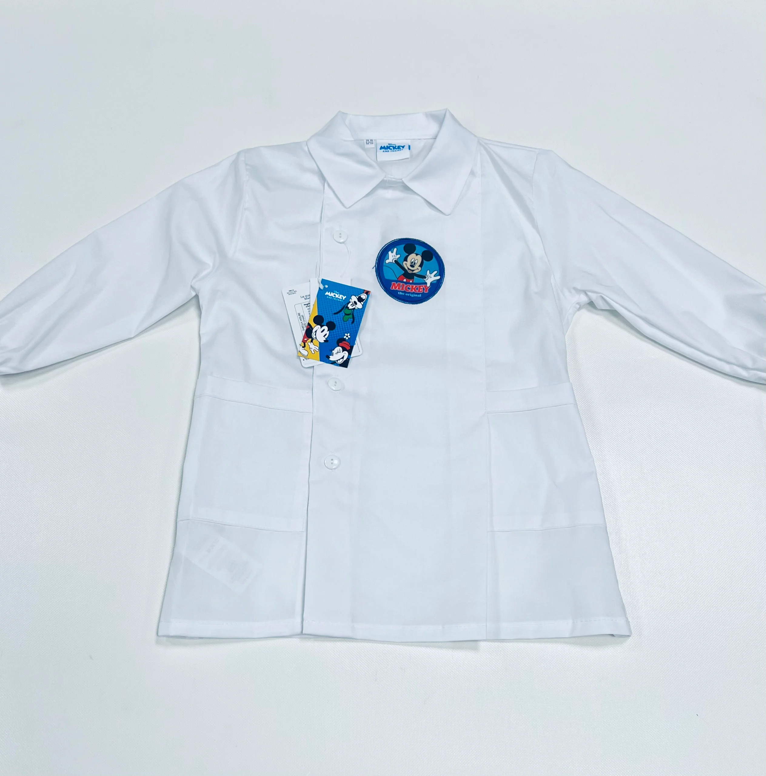 Grembiule Scuola Made in Italy – Asilo Bambino bianco Disney ricamo Mickey 65% Poliestere, 35% Cotone Abbottonatura laterale con Bottoni Colletto non rimovibile art. G302