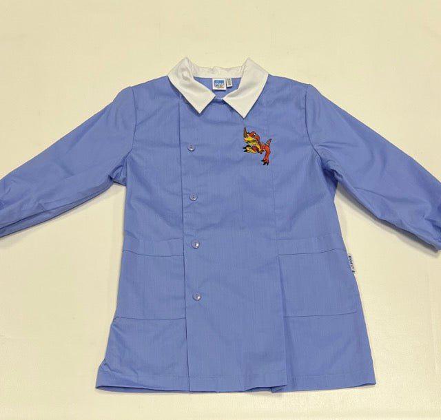 Grembiule con abbottonatura laterale scuola elementare celeste bambino Siggi Made in Italy ricamo Dinosauro 3928