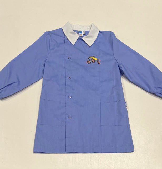 Grembiule con abbottonatura laterale scuola elementare celeste bambino Siggi Made in Italy ricamo Monster Truck 3925