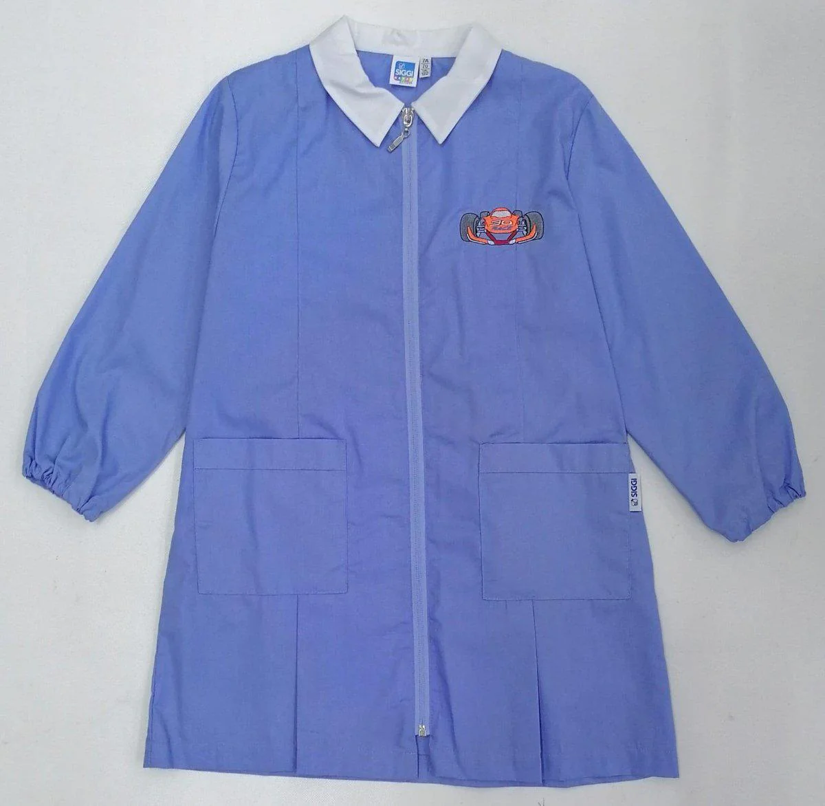 Grembiule con zip scuola elementare celeste bambino Siggi Made in Italy ricamo Race 3800