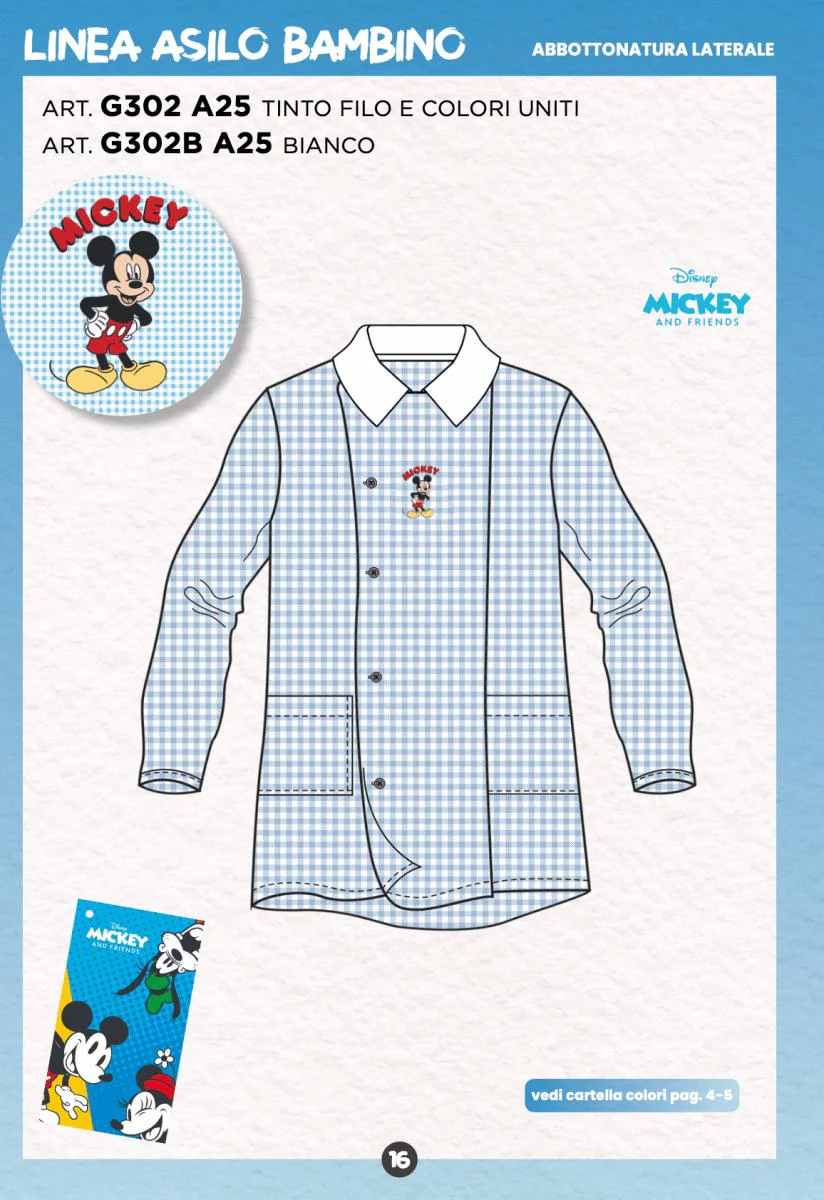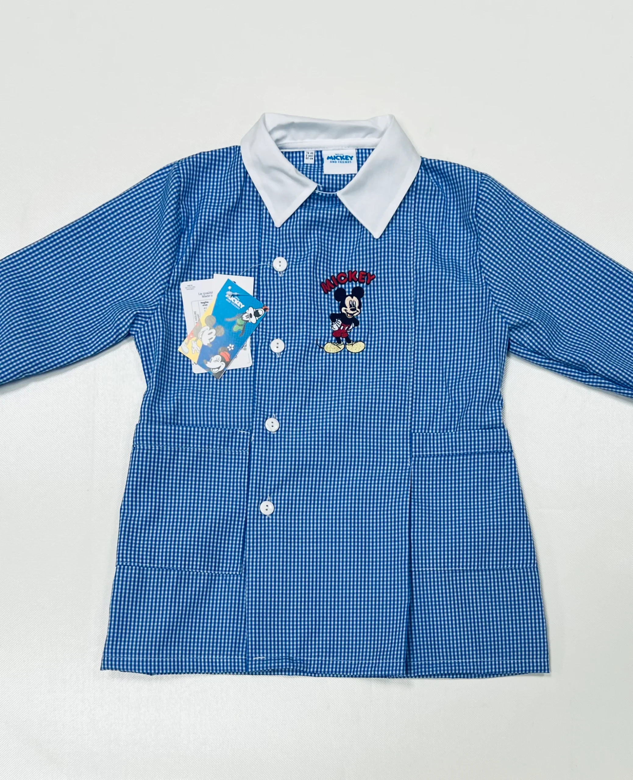 Grembiule Scuola Made in Italy – Asilo Bambino quadretti azzurri Disney Mickey 65% Poliestere, 35% Cotone Abbottonatura laterale con Bottoni Colletto non rimovibile art. G302
