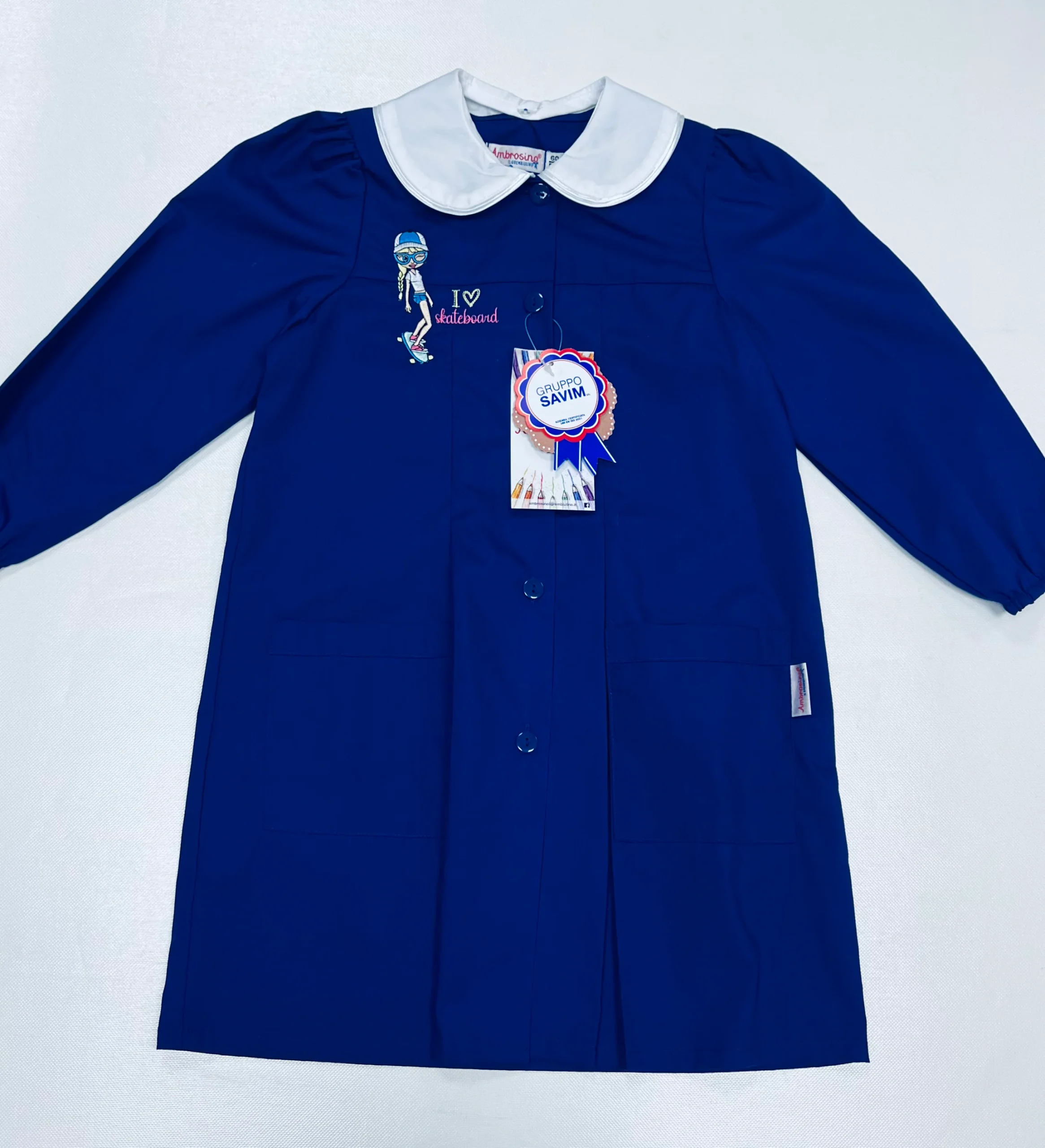 - Grembiule Scuola Made in Italy – Elementare Bambina Colore Blu – Ricamo Skateboard