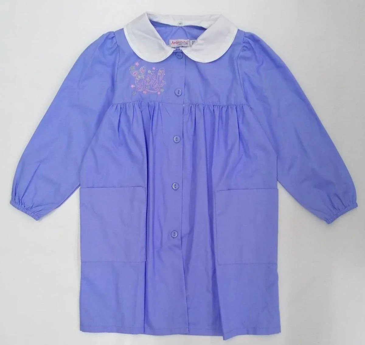 Grembiule asilo bambina con abbottonatura centrale Ambrosino ricamo Bimba Con Occhiali R307