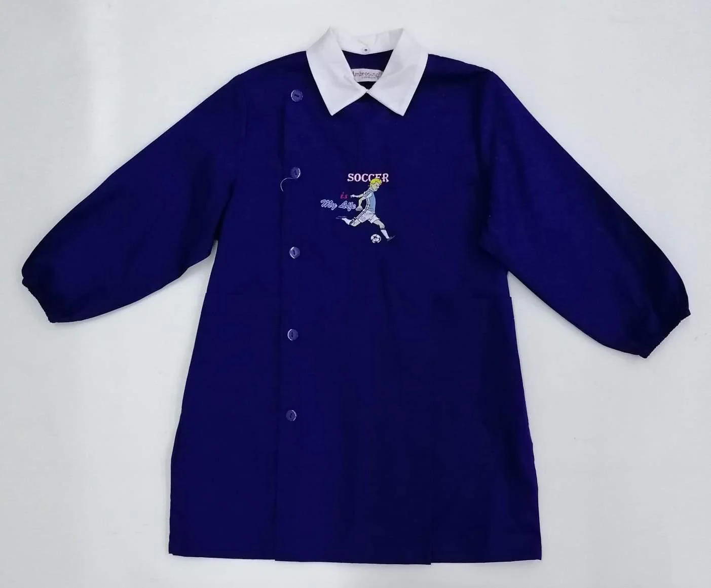 Grembiule Scuola Made in Italy – Elementare Bambino Colore Blu – Ricamo Soccer 65% Poliestere, 35% Cotone Abbottonatura laterale con Bottoni, Colletto Bianco Colletto rimovibile Colore Blu art. M209