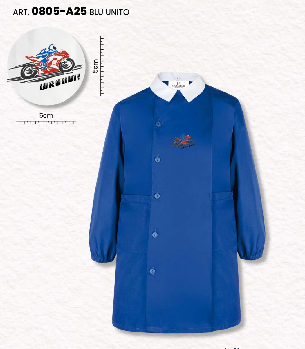 - Grembiule Scuola Made in Italy – Elementare Bambino Colore blu – Nazareno Gabrielli ricamo Vroom