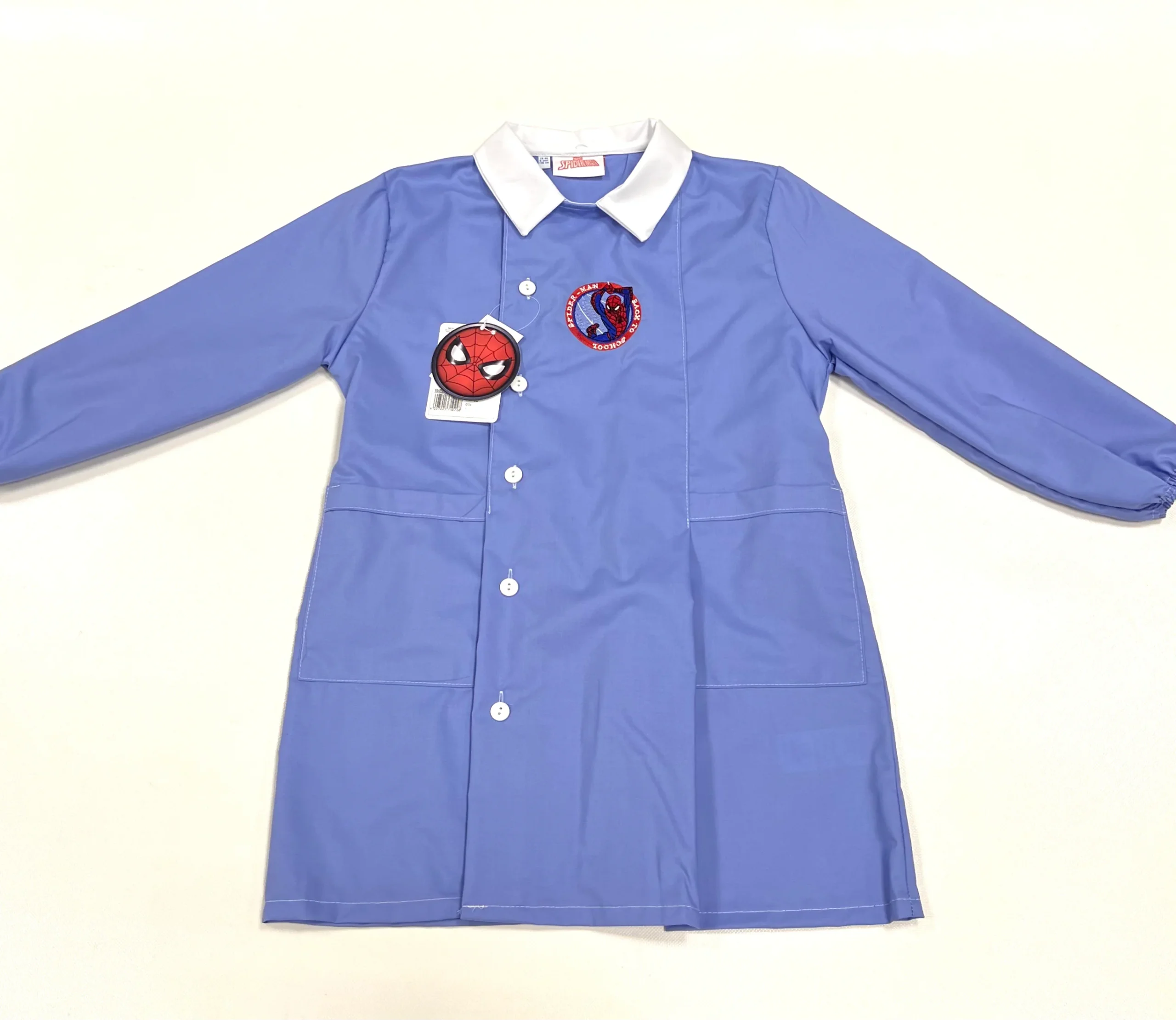 Grembiule Scuola Made in Italy – Elementare Bambino Colore Celeste – Marvel Spiderman 65% Poliestere, 35% Cotone Abbottonatura laterale con Bottoni, Colletto Bianco Colletto non rimovibile Colore Celeste G501