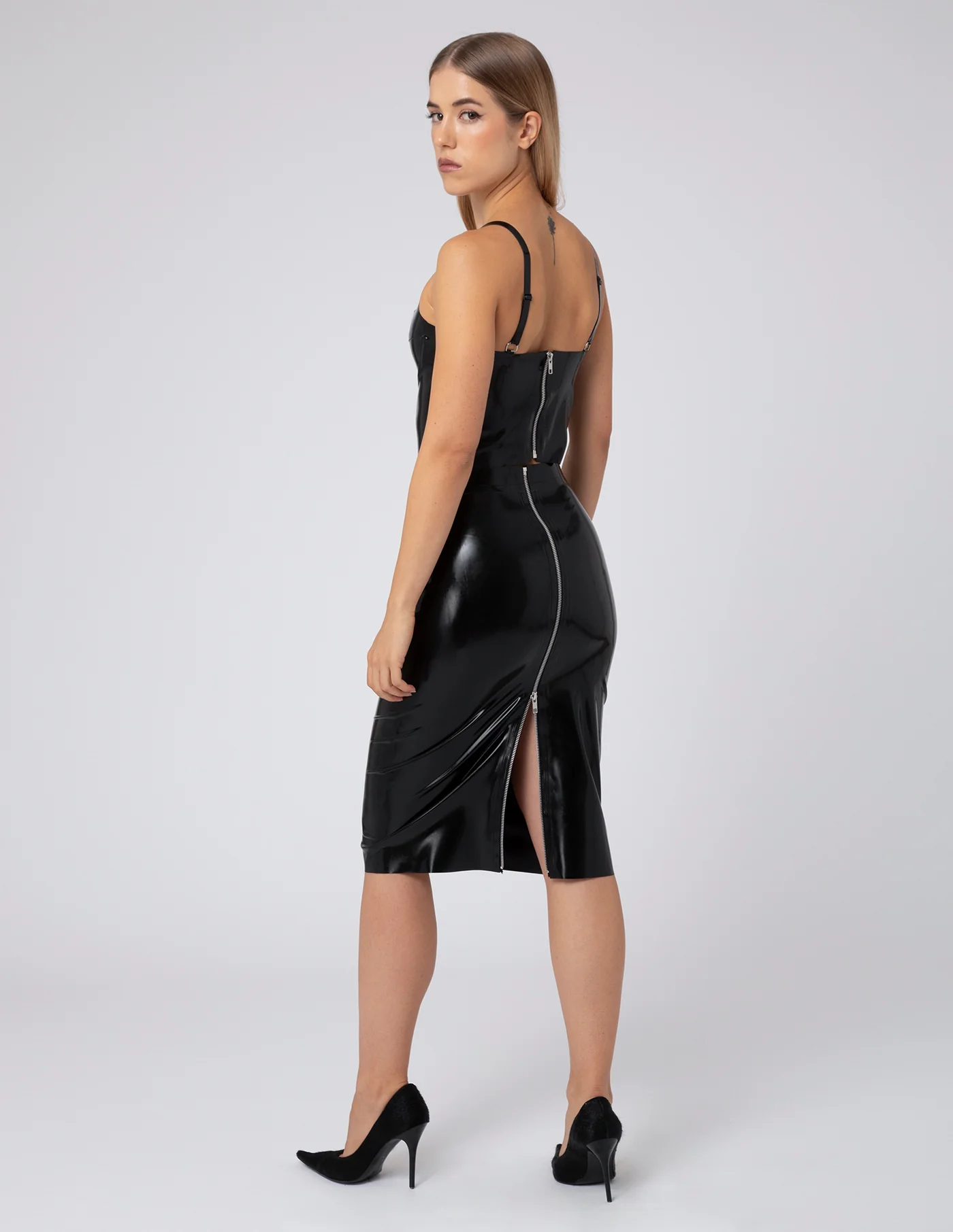 GRETA – Bustier con zip e borchie in Lattice realizzato interamente a mano in Italia dal nostro team.